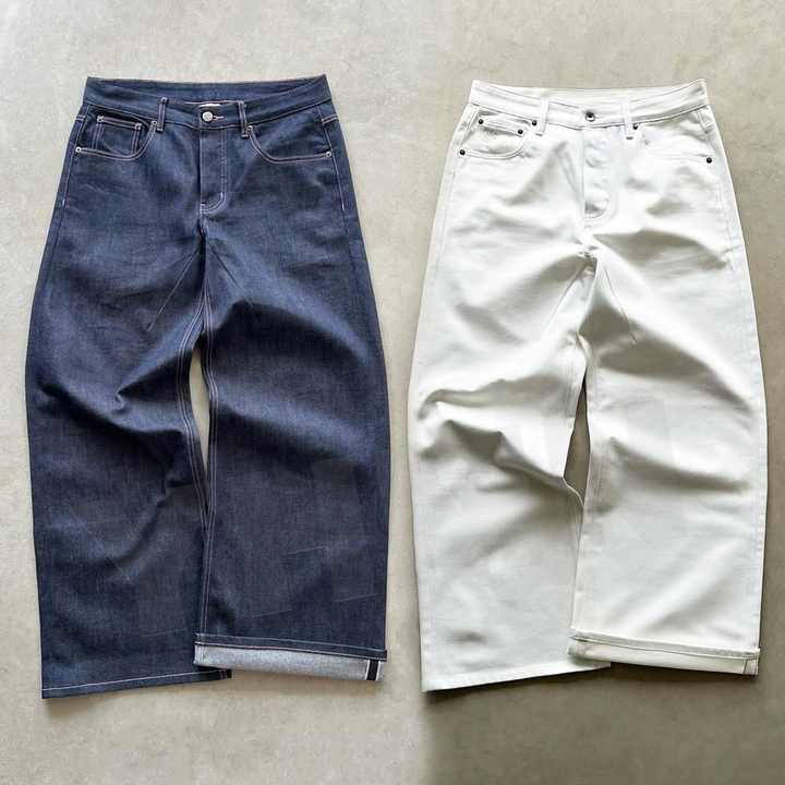 Jeans da Uomo di Design Personalizzati in Denim Selvage Giapponese Grezzo, Modello Baggy a Gamba Larga, Oversize, Dritti, Bootcut e Stile Raw
