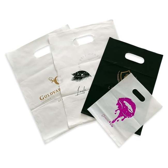 Borse di Plastica Biodegradabile Personalizzate con Manico Fustellato Sacchetti per la Spesa con Manici Fustellati all'Ingrosso per Attività Commerciali