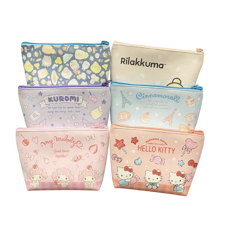 Borsa per Cosmetici Portatile da Donna in Pelle PU Impermeabile Ecologica con Cerniera e Stampa Digitale Personalizzata Hello KT