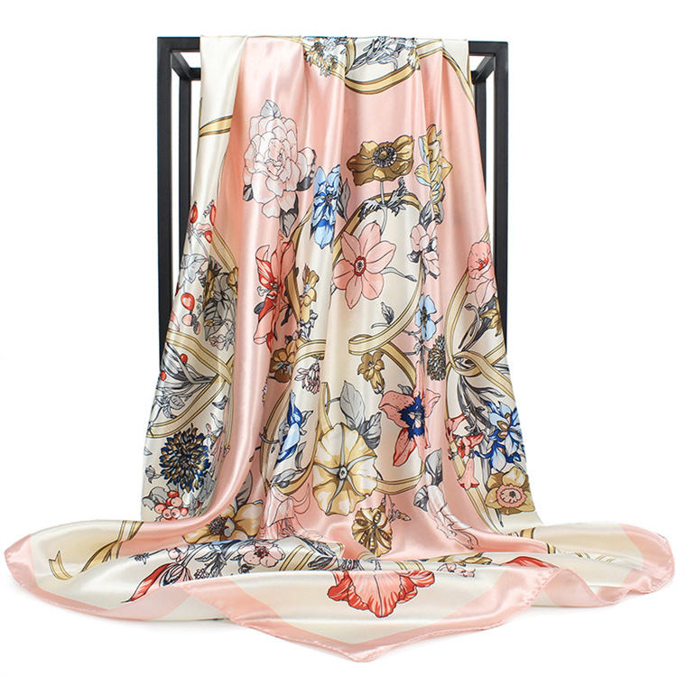 Custom Brand Design Hijab Bandana Digital Print 100% Silk Scarf Satin