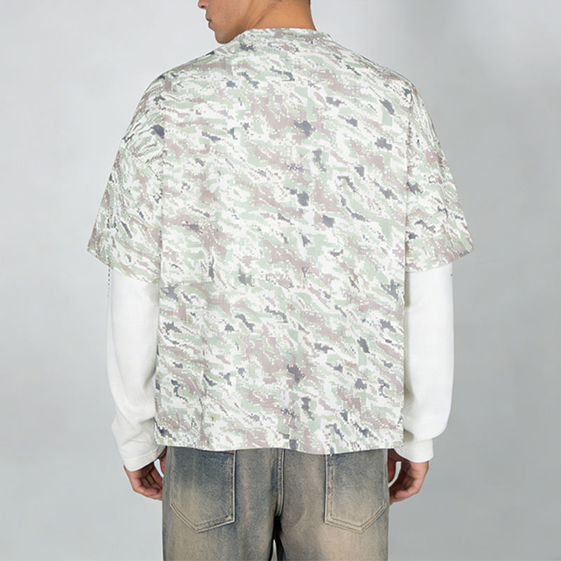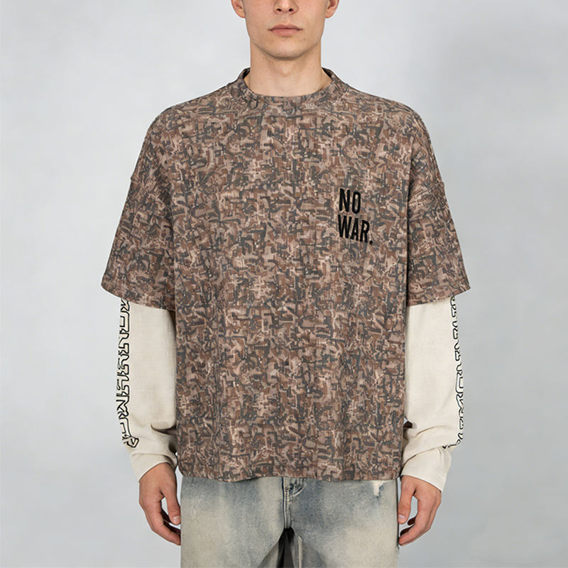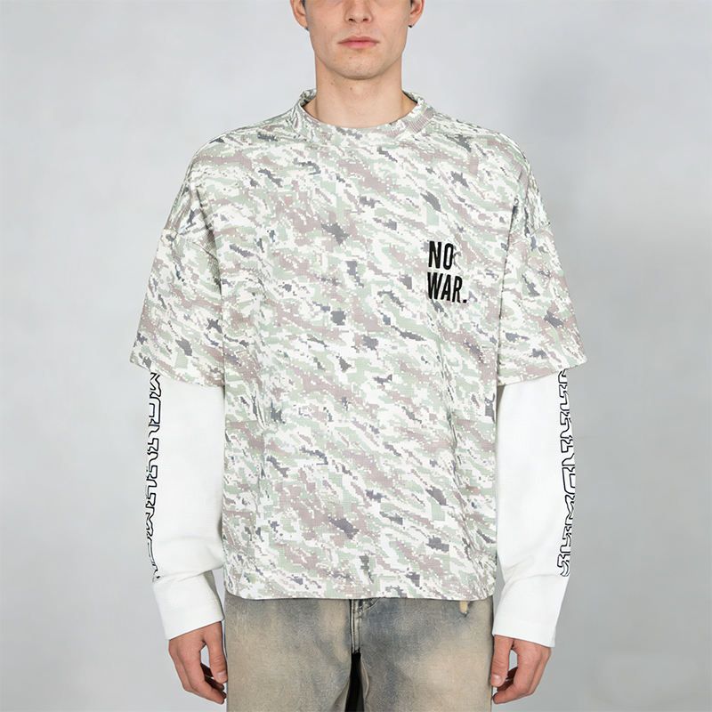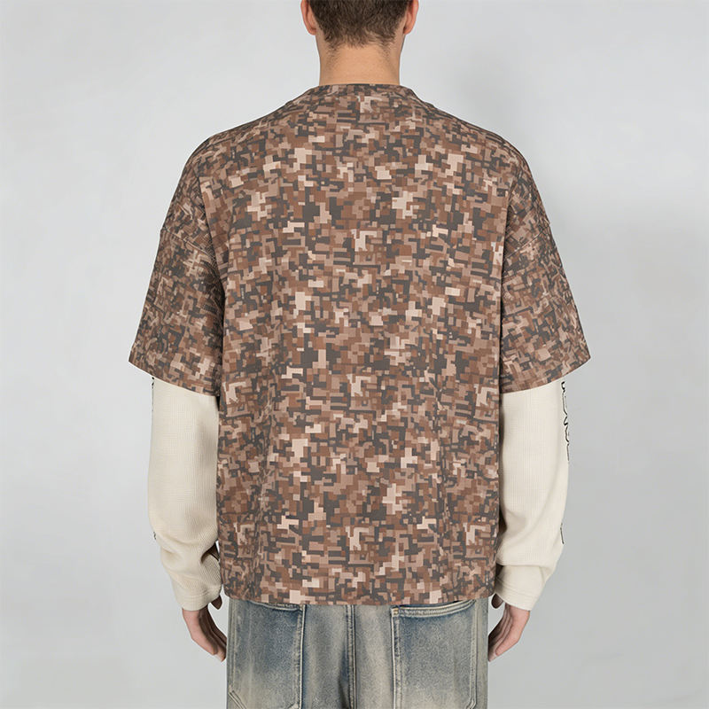 T-shirt mimetica oversize personalizzata a doppio strato a maniche lunghe in cotone pesante da 320 g/m² con spalle scese