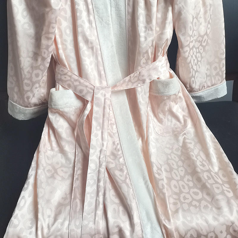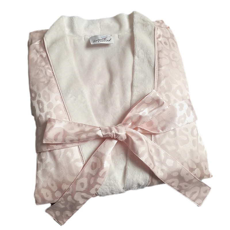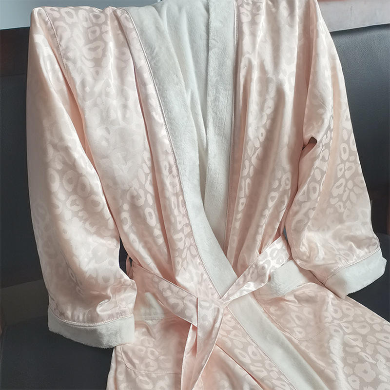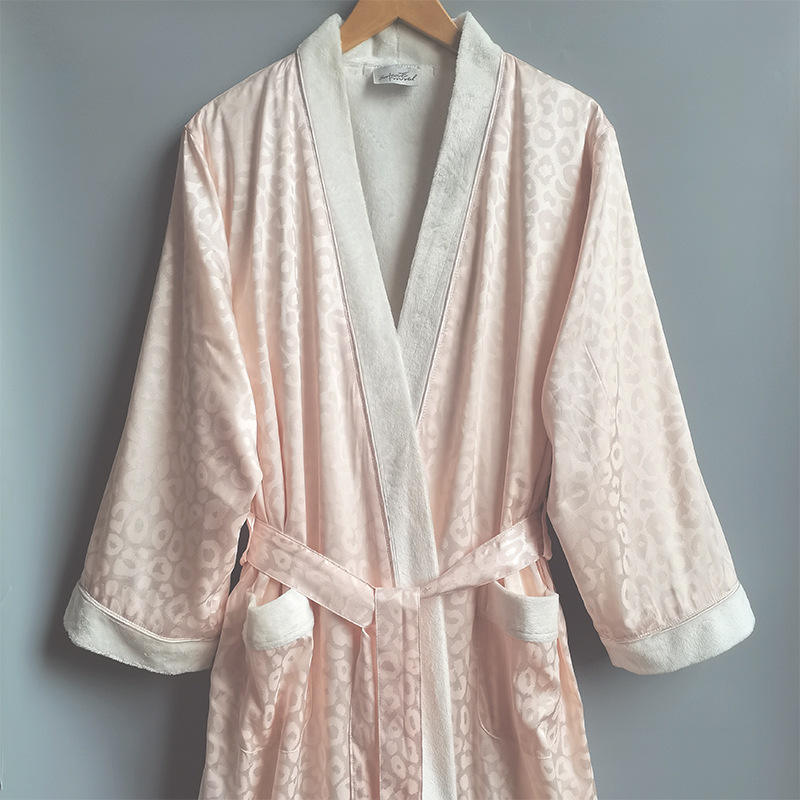 Accappatoio Personalizzato a Doppio Strato in Raso Esterno e Pile Corallo Interno, Jacquard 100% Poliestere, Comodo per Donne