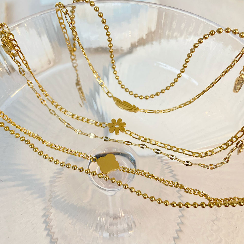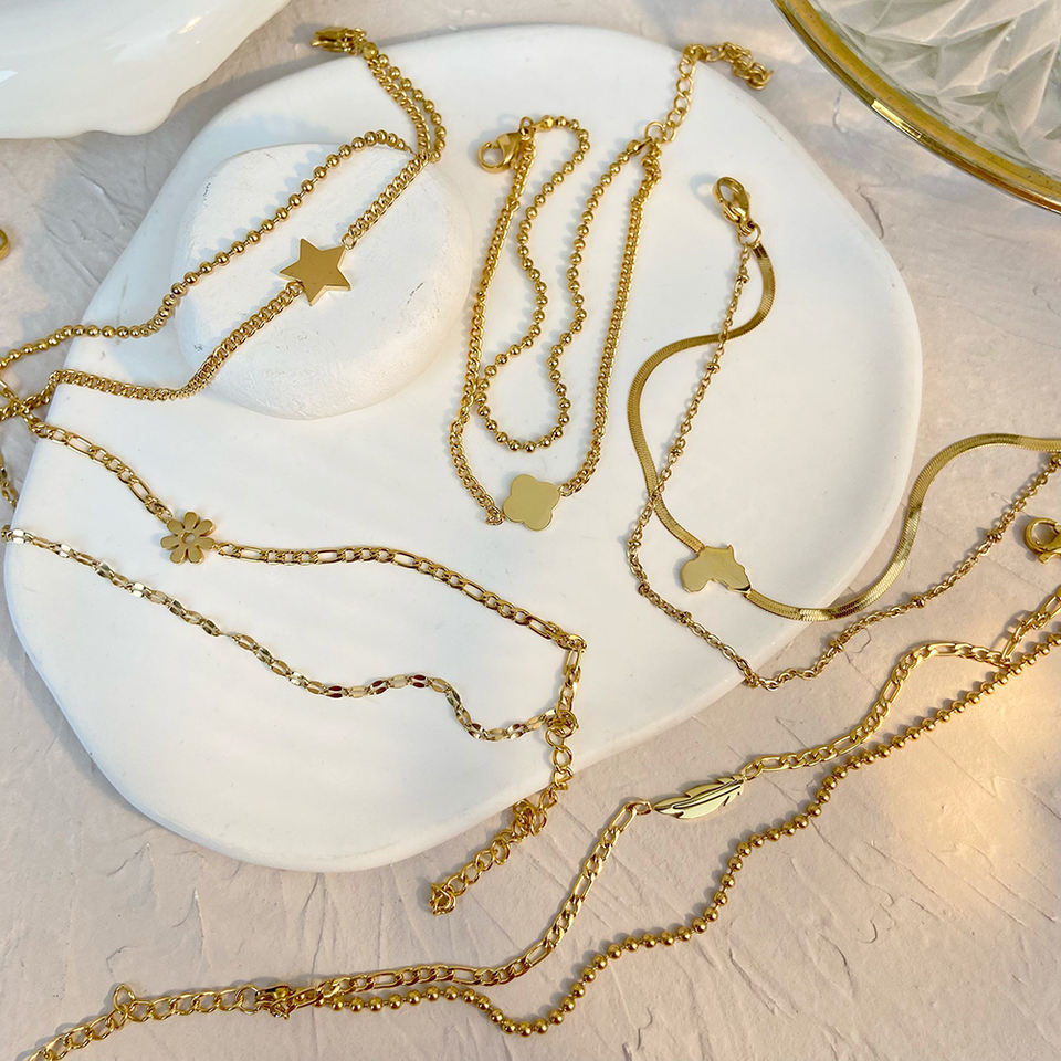 Catena di perline a catena di serpente a doppio strato personalizzata gioielli delicati bracciale con mappa di stelle di fiori di trifoglio di piume placcato oro in acciaio inossidabile