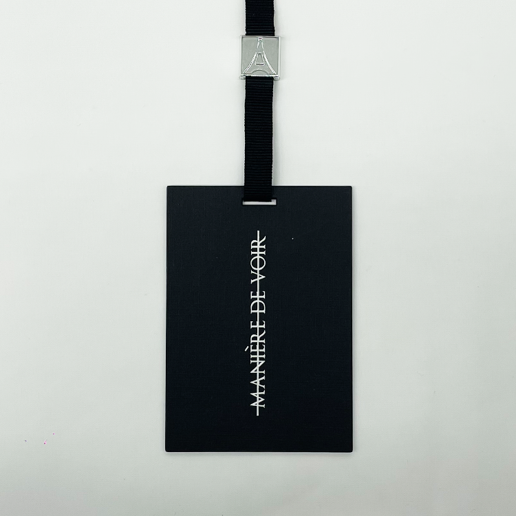 Doppia stampa personalizzata nome e Logo indumento personalizzato etichette da appendere spesse etichette per vestiti per bambini con stringhe