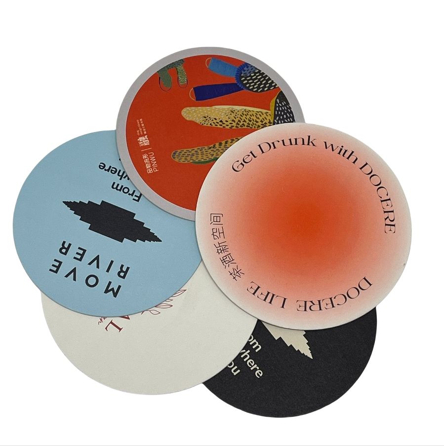 Biglietto da visita su due lati personalizzato con carta da viaggio stampata su sottobicchiere progettato da una fabbrica di carta artistica per bevande