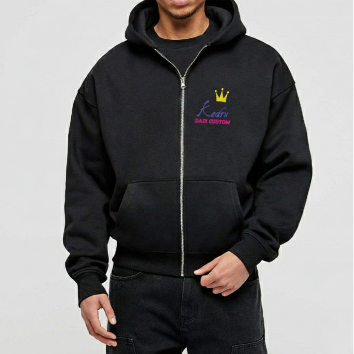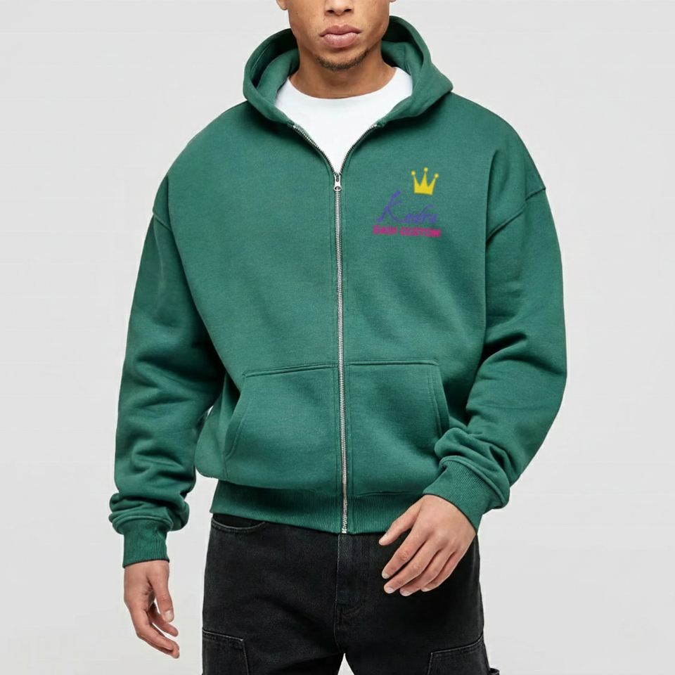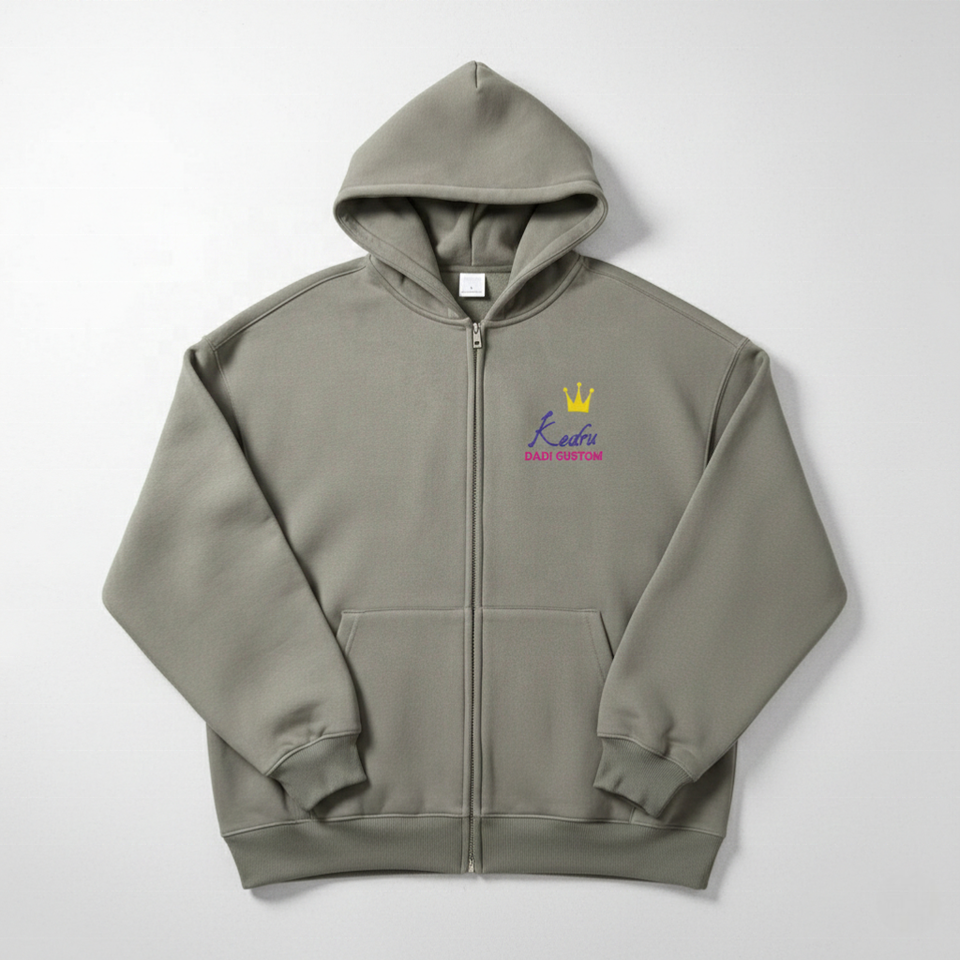 Felpa con cappuccio in pile invernale personalizzata con doppia zip intera, 350/400/450 GSM, ODM, marrone tinta unita, 100% cotone pesante, stampa casual