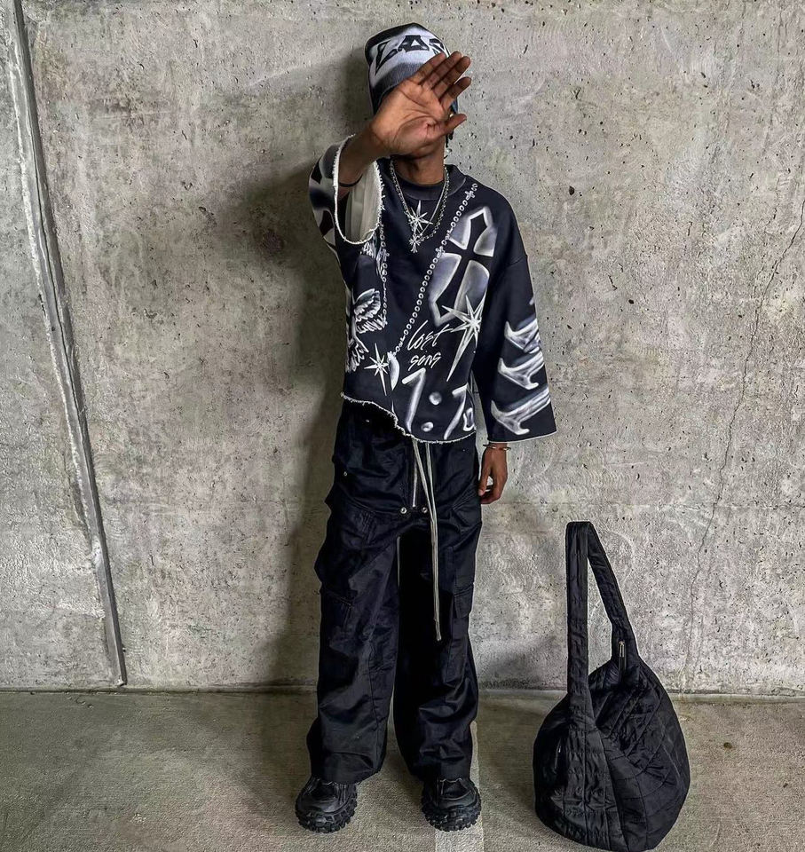 Custom Drop Shoulder Crop Sweater Unisex All Over Print Heavy French Terry Cotton Oversized Raw Hem Cropped T Shirt for Men