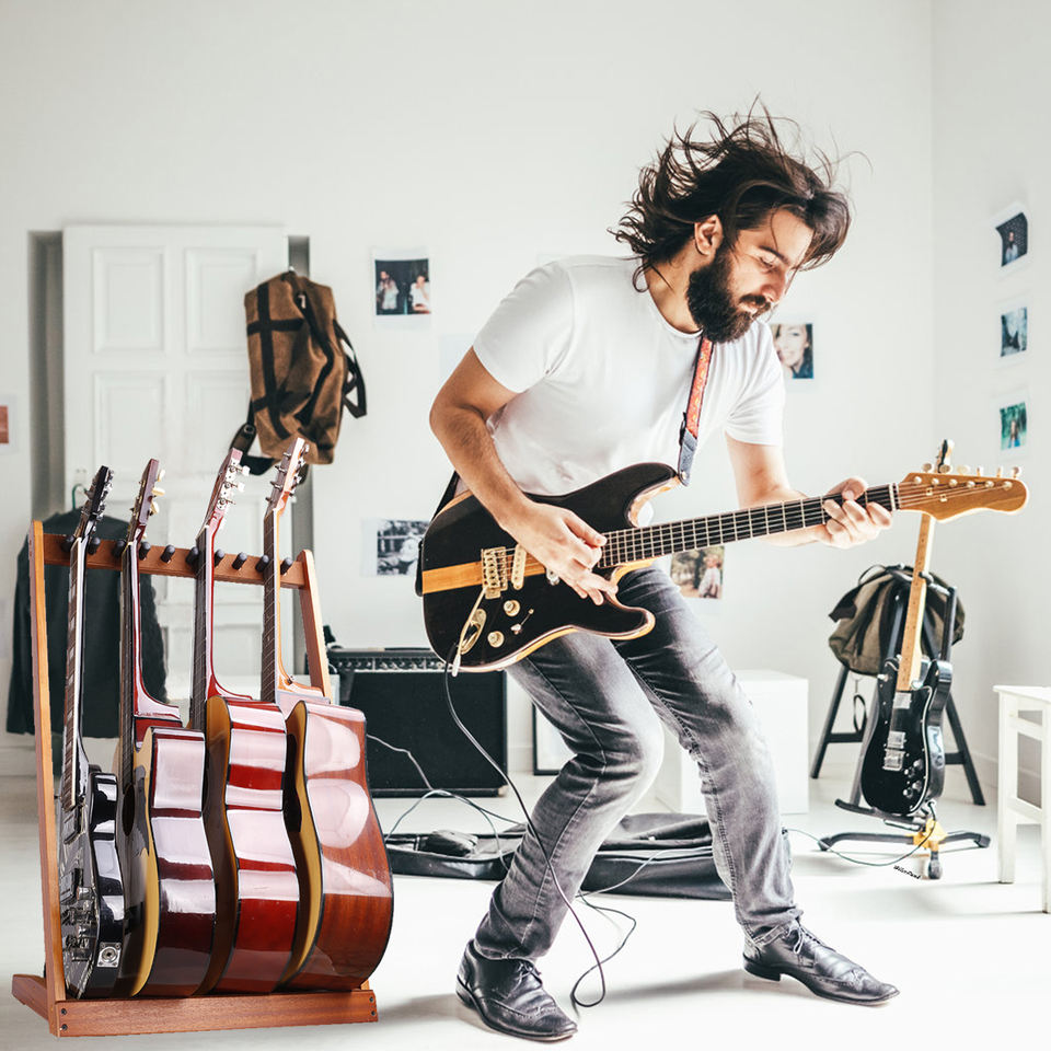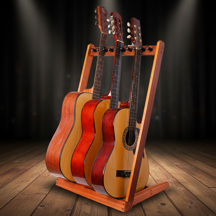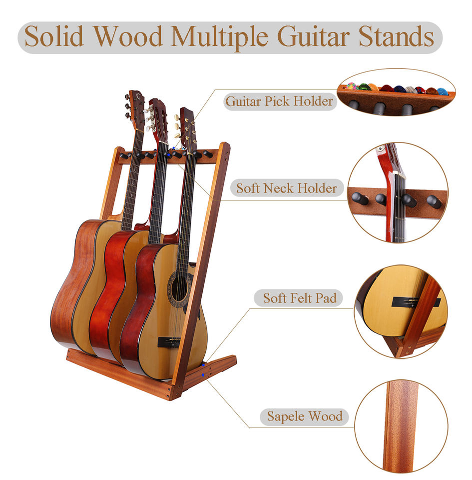 Custom Durable Wood Multi Group Guitar Display Stand Folk Electric Acoustic Bass Plectrum Vertical Row Storage Rack Holder