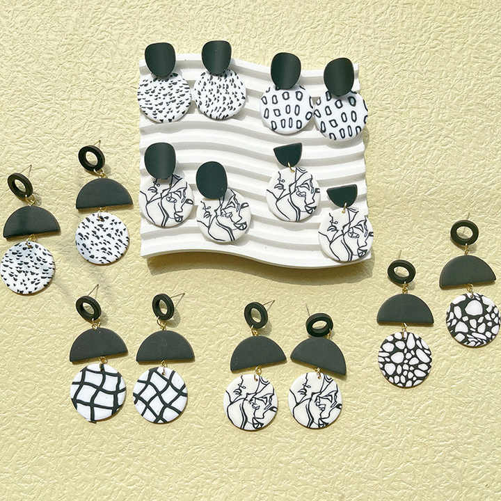 Carte personalizzate dell'orecchino che imballano gli orecchini circolari geometrici dell'argilla del polimero di dichiarazione dell'argento sterlina dell'annata 925 di contrasto di colore