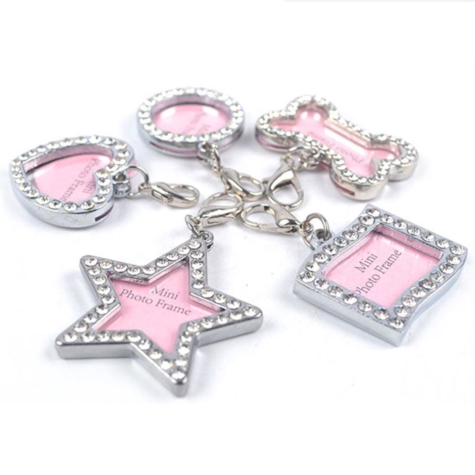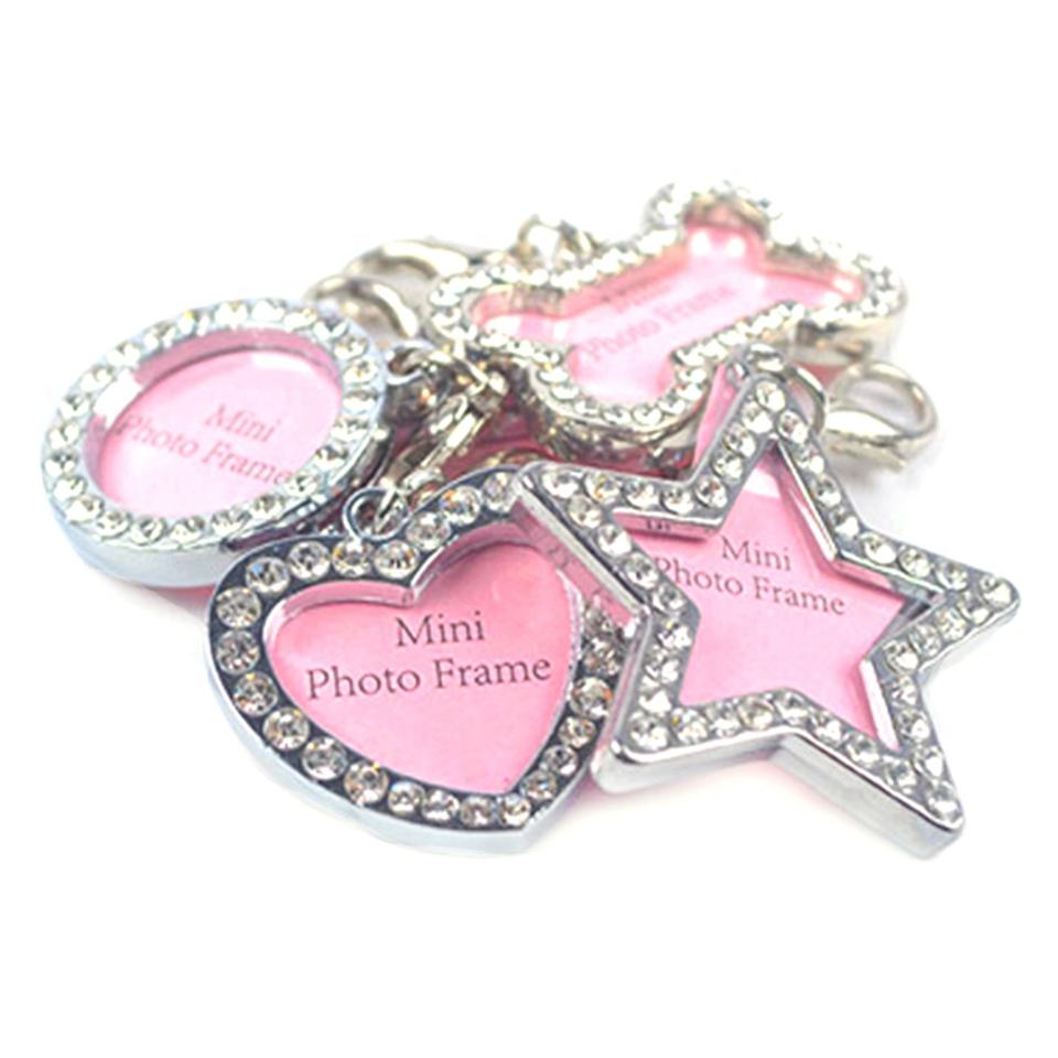 Targhetta Identificativa Personalizzata per Animali Domestici in Lega Ecologica di Lusso, Ciondolo per Collare di Cani e Gatti, Mini Cornice Portafoto, Forme a Osso, Cuore e Stella