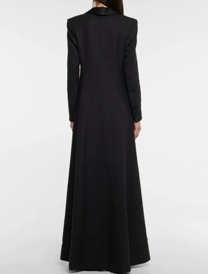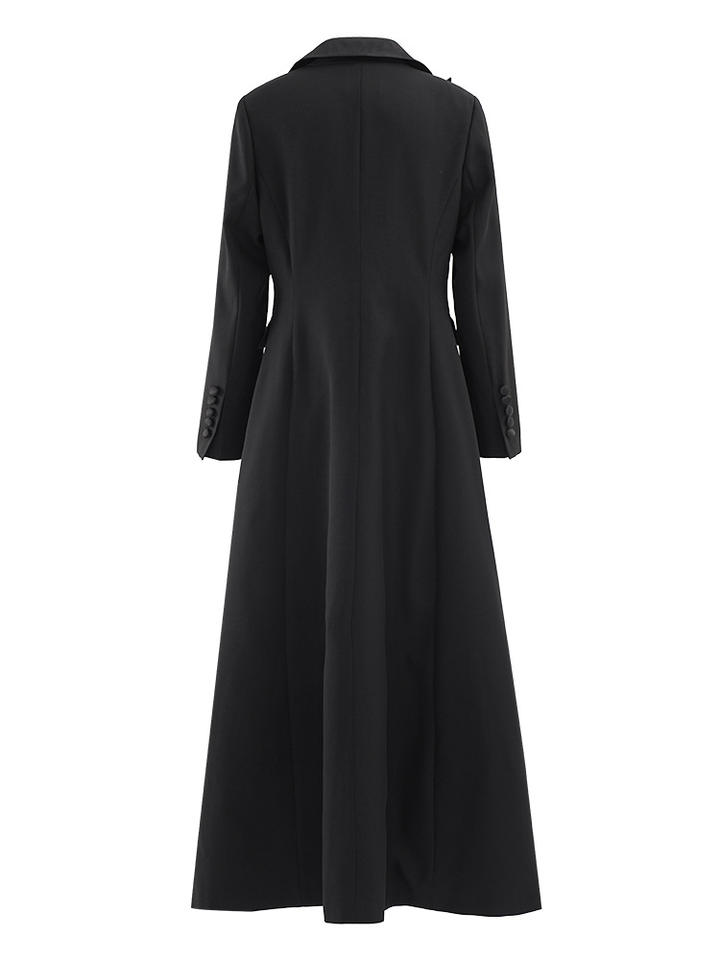 Custom Elegant Black Long Blazer Women One Button Satin Trim Collar Maxi Coat Stylish Winter Ladies Suit Jacket Abaya Coat ODM