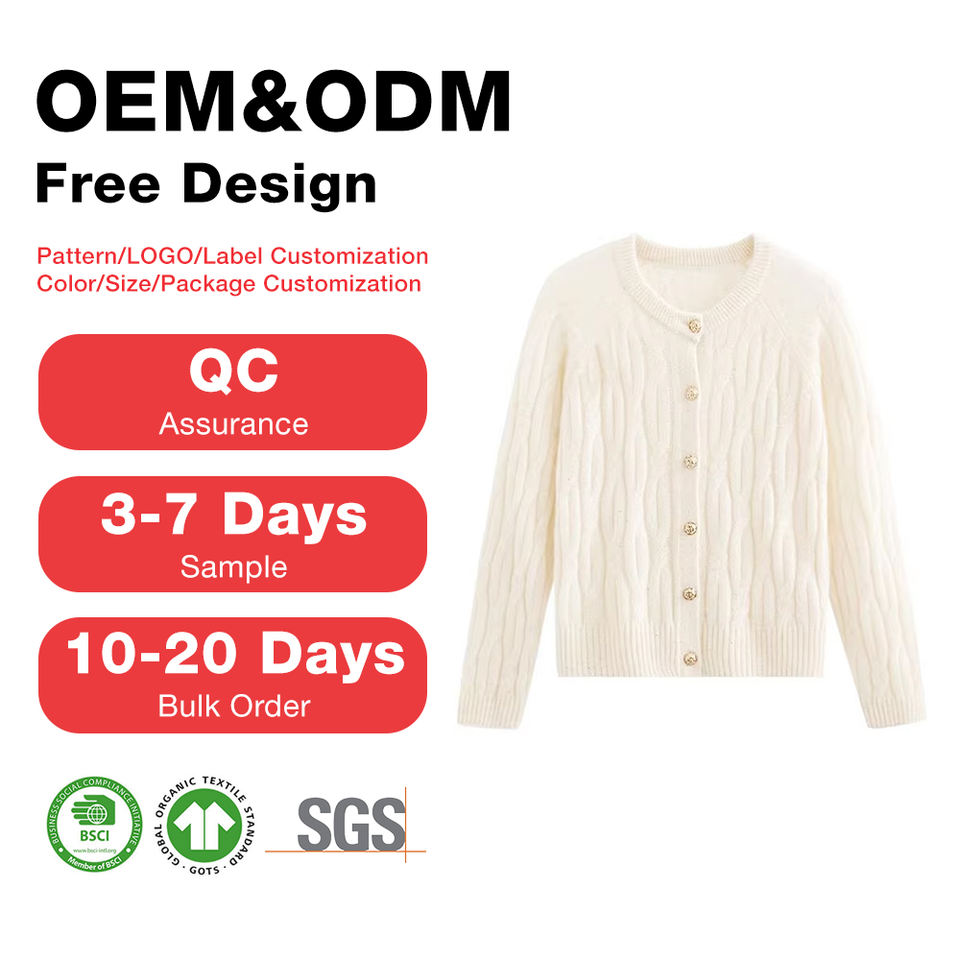 Custom Elegant Women's Cable-Knit Blend 60% Cashmere Knit Jackets Round Neck Tone Buttons Winter Knitted Cardigan
