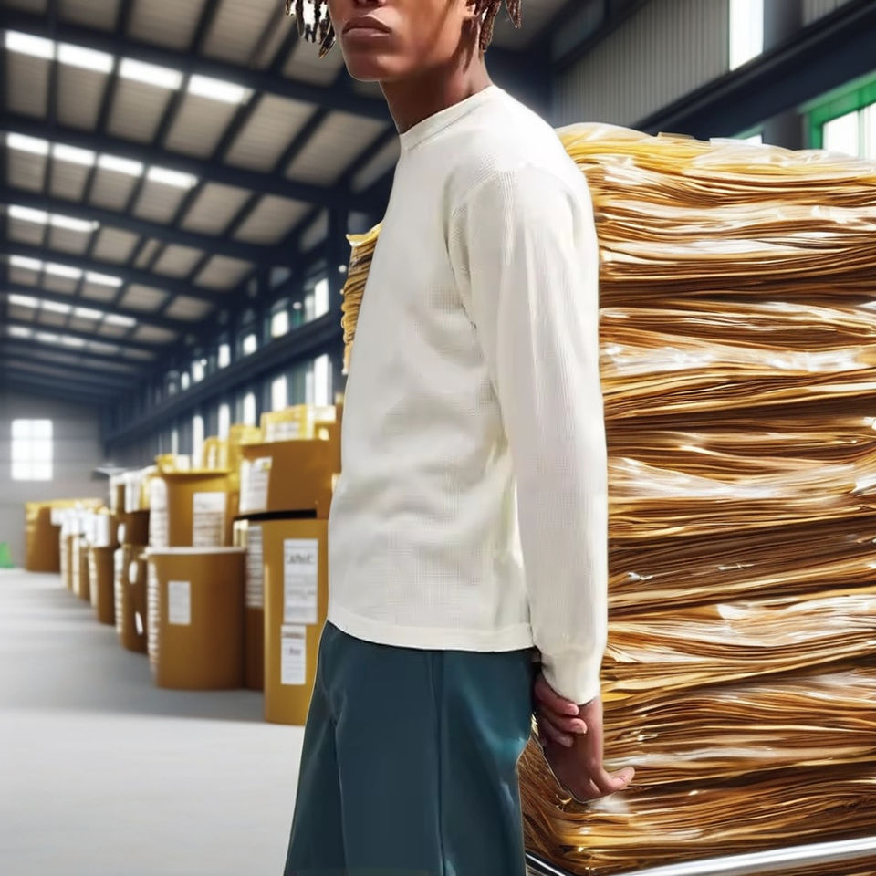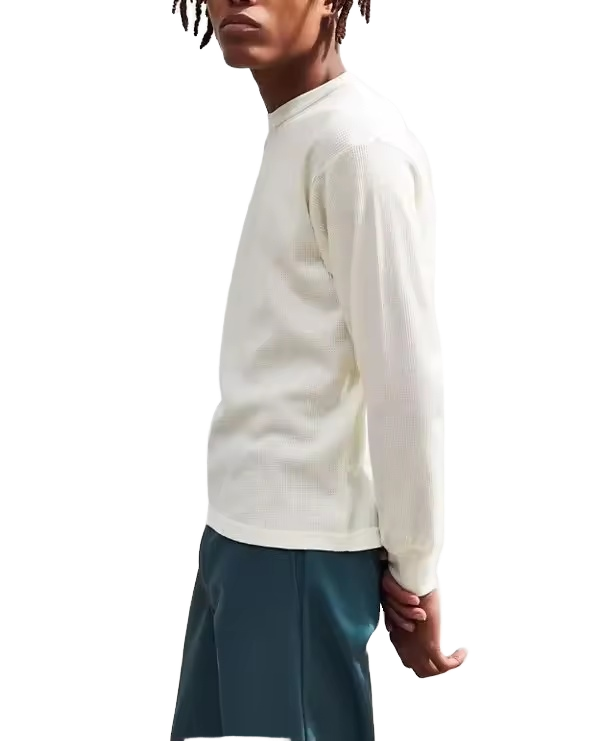 Custom Embossed Long Sleeve Waffle Knit T-Shirt for Men Solid Pattern Thermal Combed Cotton Streetwear Heavy Weight Clothing