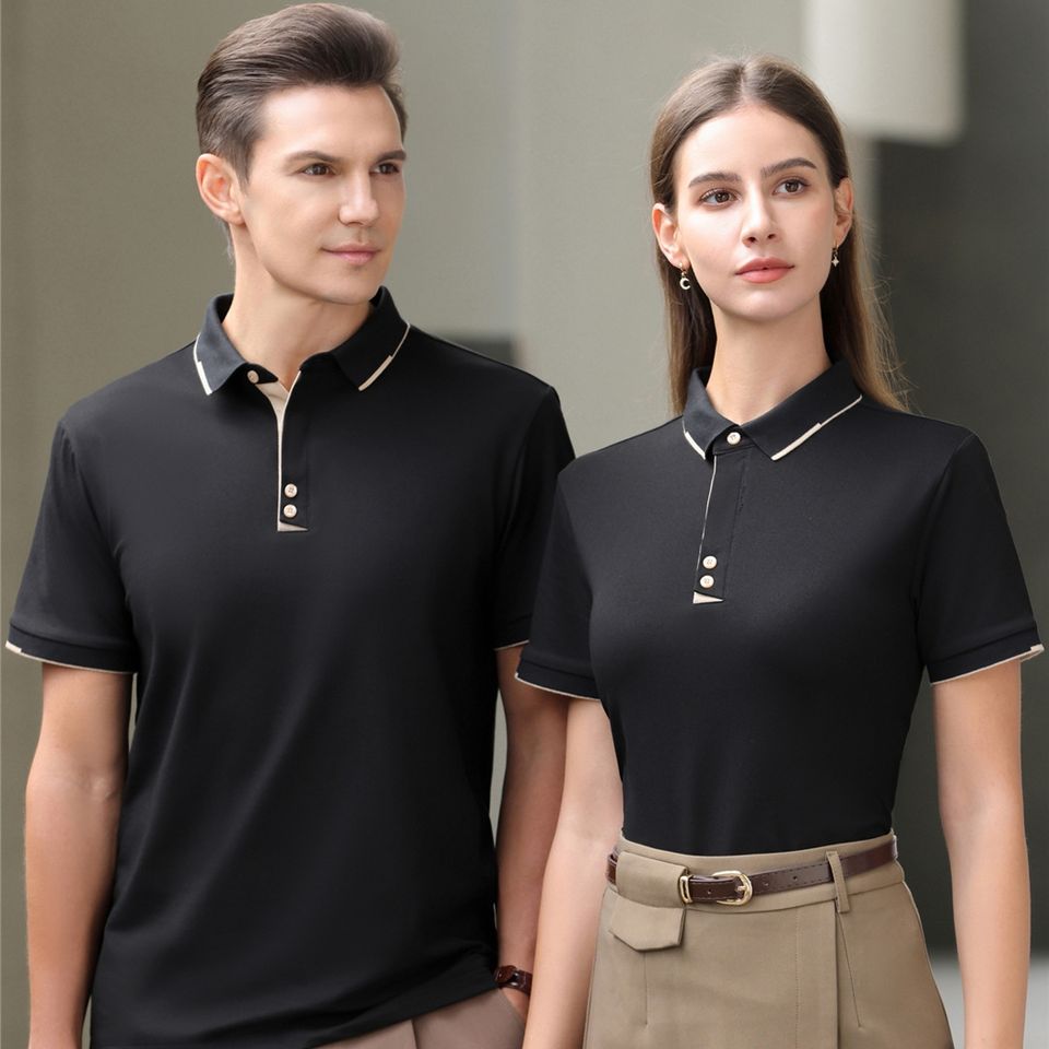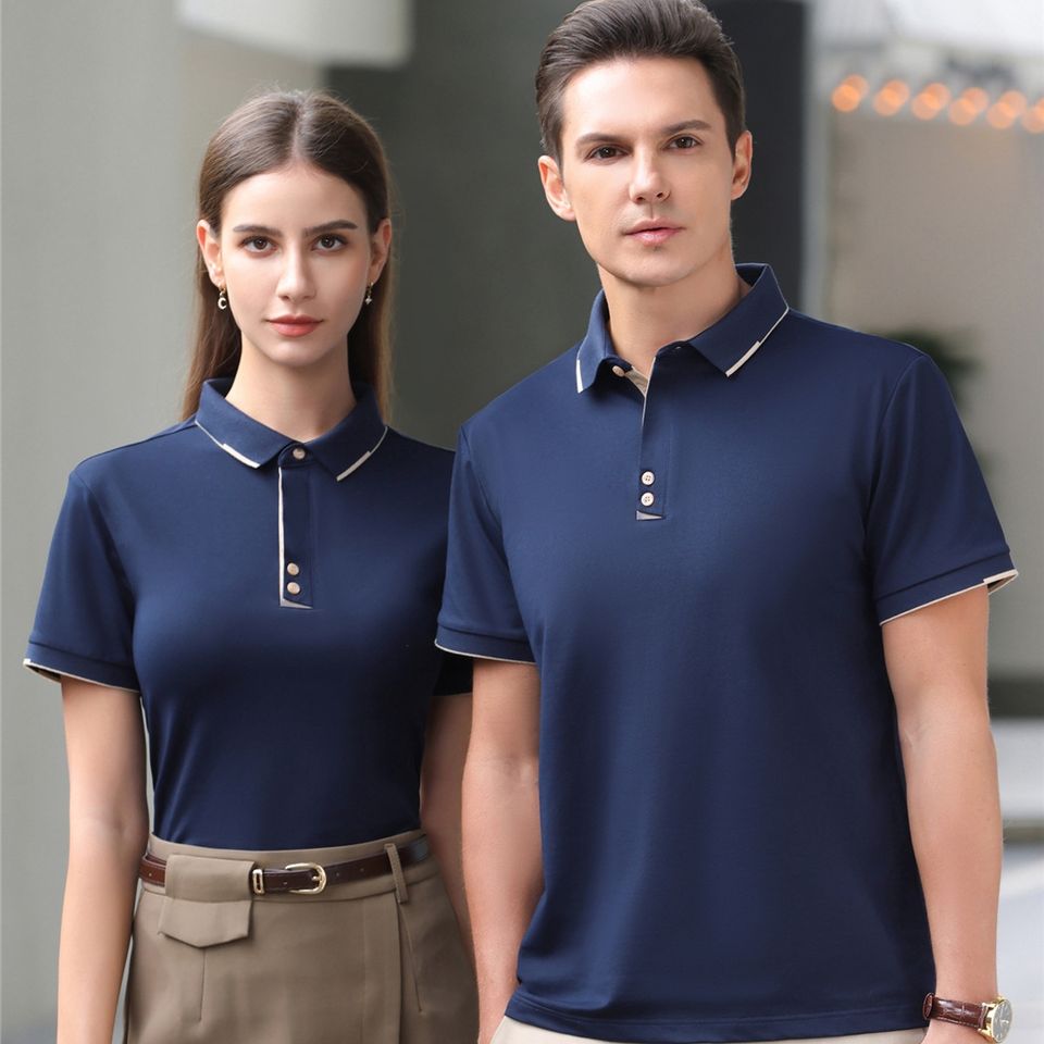 Maglietta Unisex Personalizzata con Logo Ricamato, a Righe, Antirughe, in Cotone Lavorato a Maglia, di Alta Qualità, Casual, con Bottoni, Maniche Corte, Traspirante