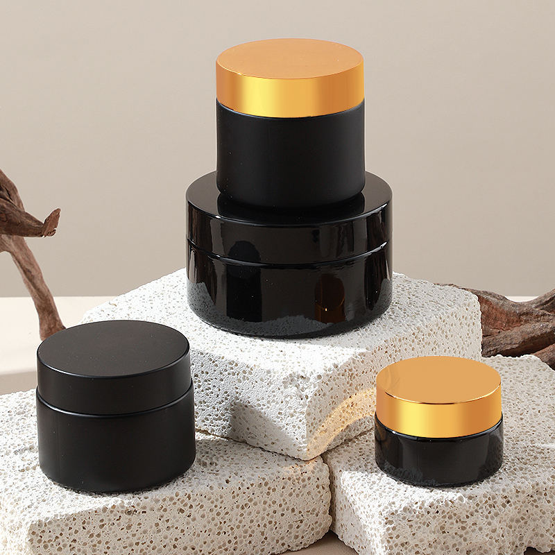 Barattoli di vetro vuoti personalizzati contenitori cosmetici 100ml 30ml bocca larga 30ml barattolo di vetro ambra con coperchio nero per Gel per capelli 50g 30g