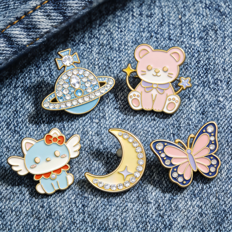 Spilla smaltata personalizzata, spilla in smalto morbido, simpatico cartone animato anime con glitter, distintivo in metallo, produttore di loghi, placcatura UV, spilla da bavero in smalto duro personalizzata