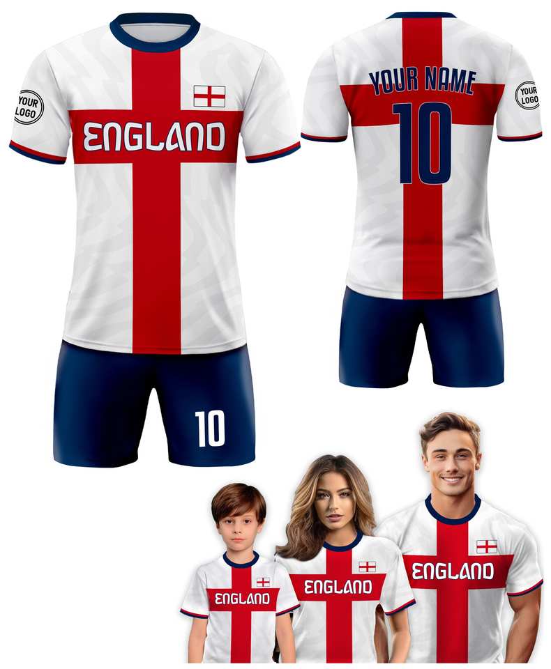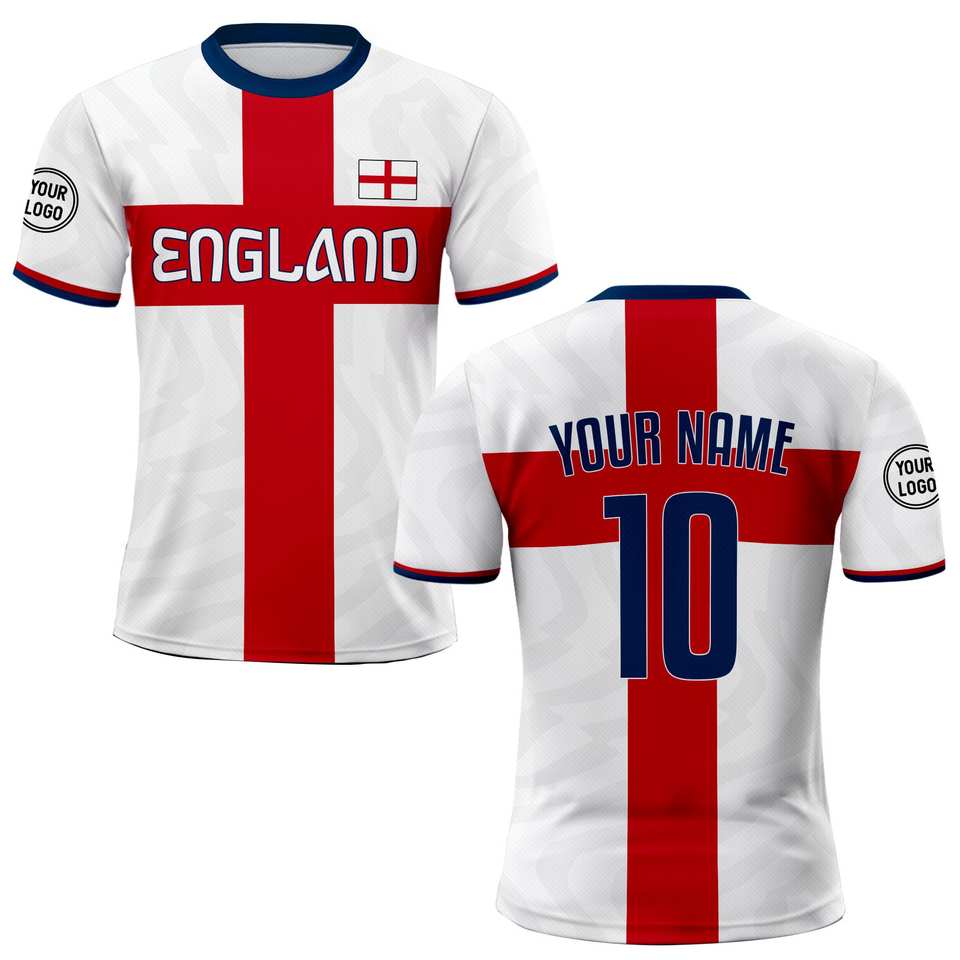 Maglia da calcio in Inghilterra personalizzata da uomo con nome e numero automatizzato Set di maglia da calcio nazionale da taglio per tifosi e giocatori