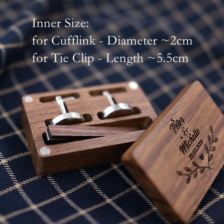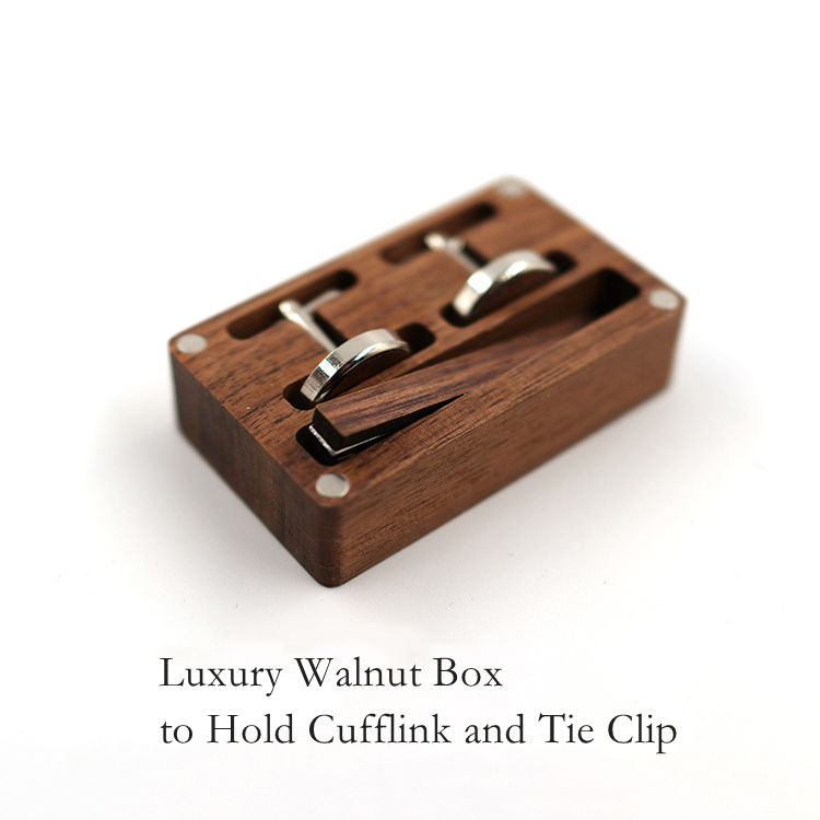 Logo personalizzato inciso di lusso noce contenitore regalo da viaggio imballaggio in legno cravatta Clip porta gemelli