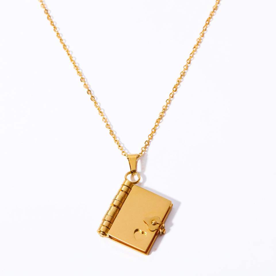 Collana con Libro Inciso Personalizzato in Acciaio Inossidabile Placcato Oro 18K, Gioiello Trendy Ipoallergenico Impermeabile, Regalo per Donne