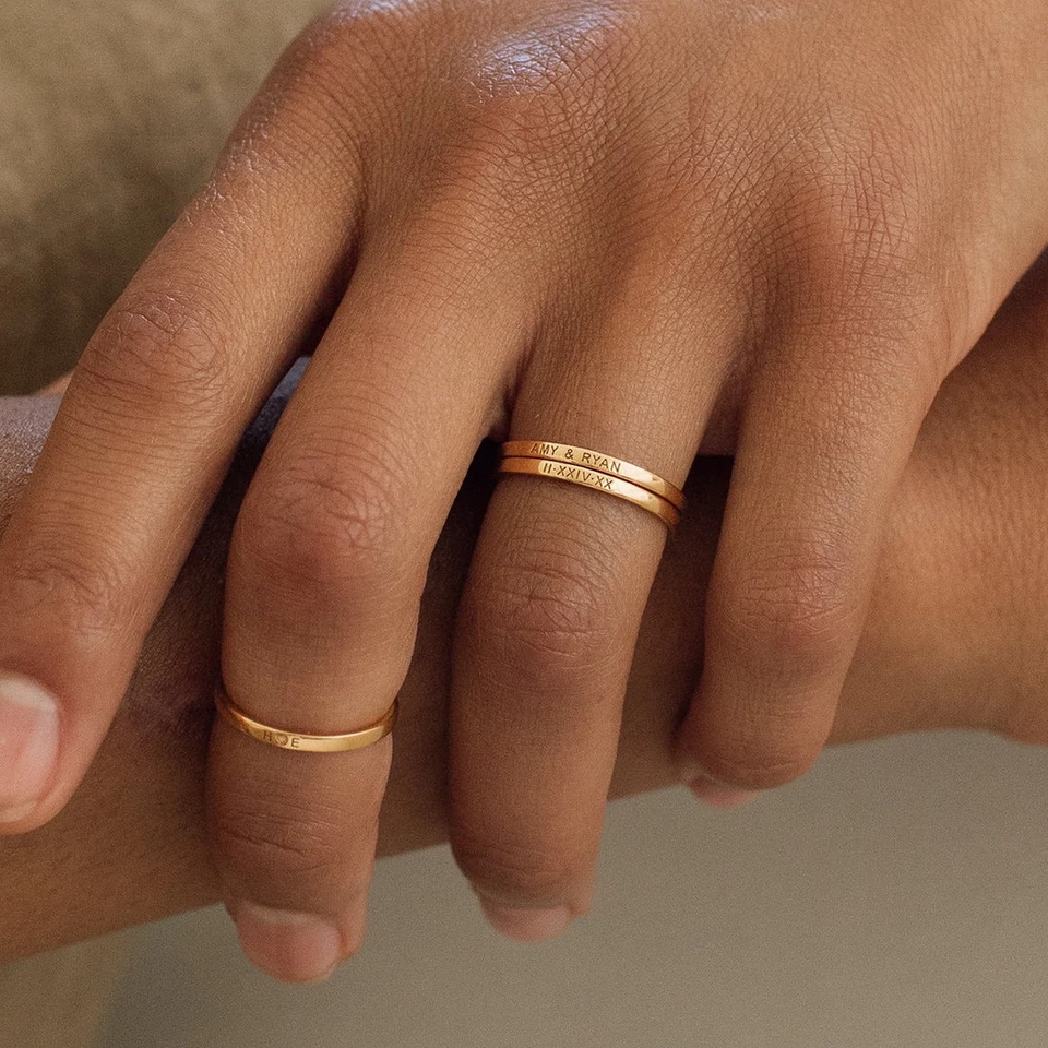 Nome della data inciso su misura Skinny Band deliny impilamento nome anello per la sua moda in acciaio inox gioielli da donna
