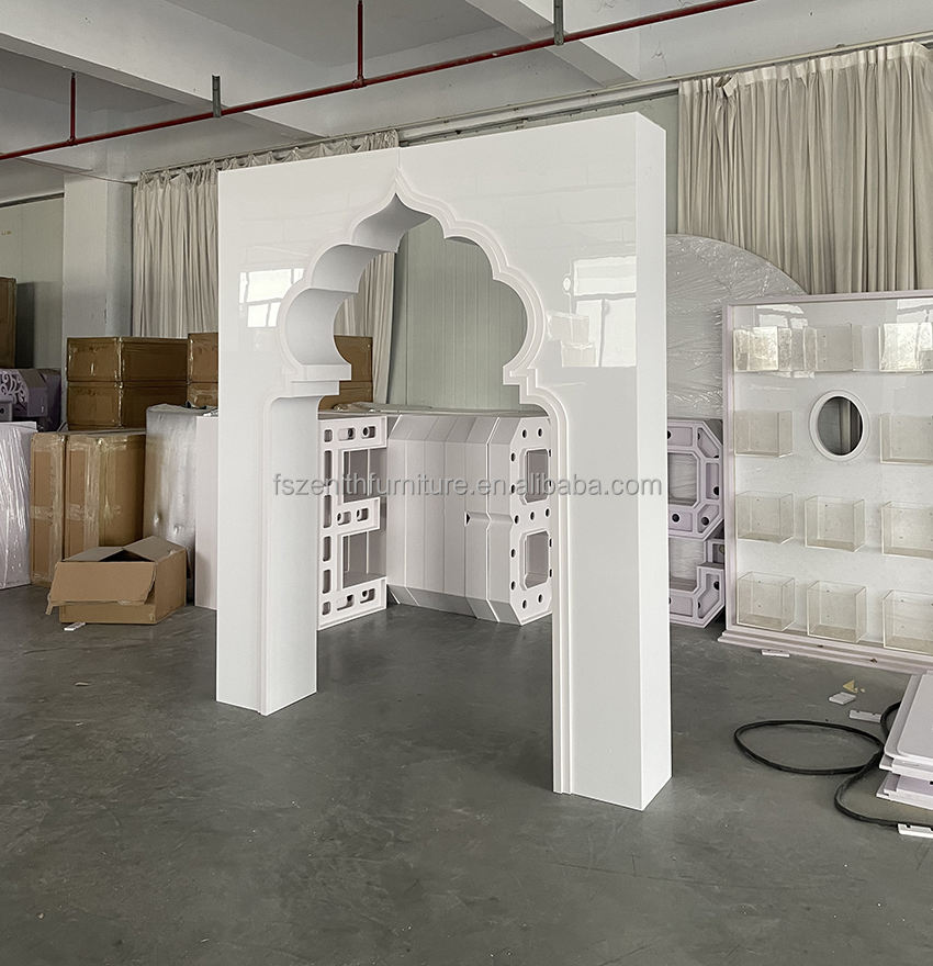 Custom evento palazzo arco indiano arabico PVC retro a goccia acrilico parete stile arabico sfondo
