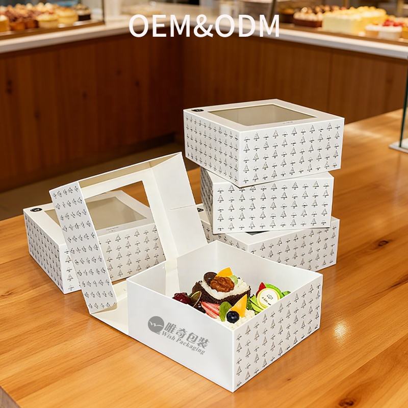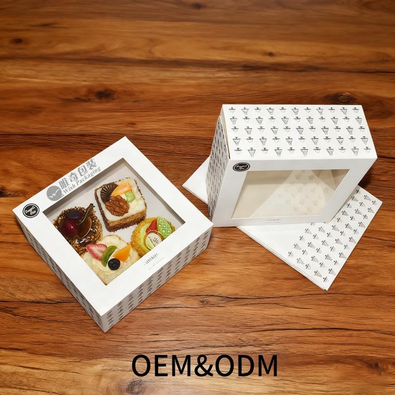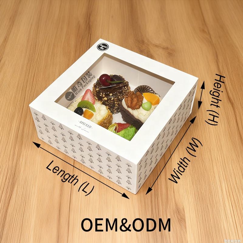 Custom FSC torta bianca con coperchio in PVC per finestra, laminazione opaca e stampa CMYK per ciambelle Brownie confezione per Dessert