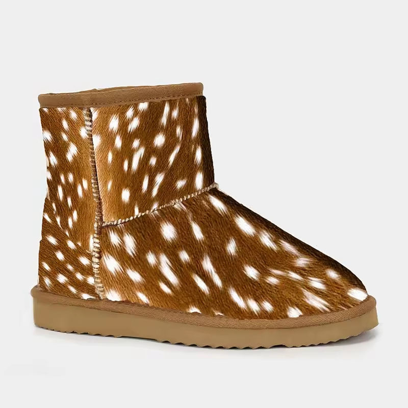 Custom Factory Men's Classic Snow Winter Warm Faux Fur Shearling Sheepskin Ankle Print Boots Booties