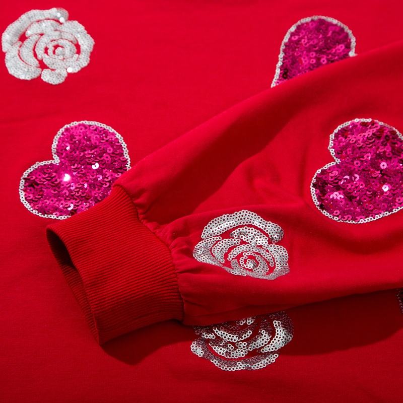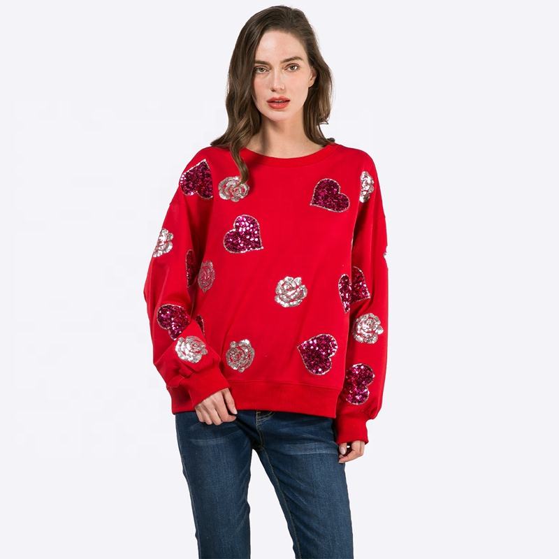 Pullover donna autunno personalizzato felpa donna tinta unita paillettes Love Rose Patch Pullover moda Pullover sudore all'ingrosso