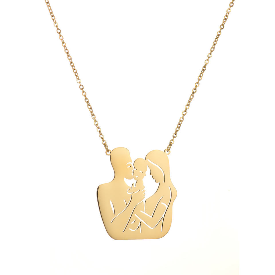 Ciondolo famiglia personalizzato collana in acciaio inossidabile Color oro placcato una famiglia di tre pendenti genitore-figlio per madri