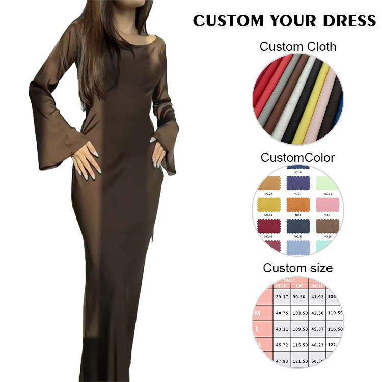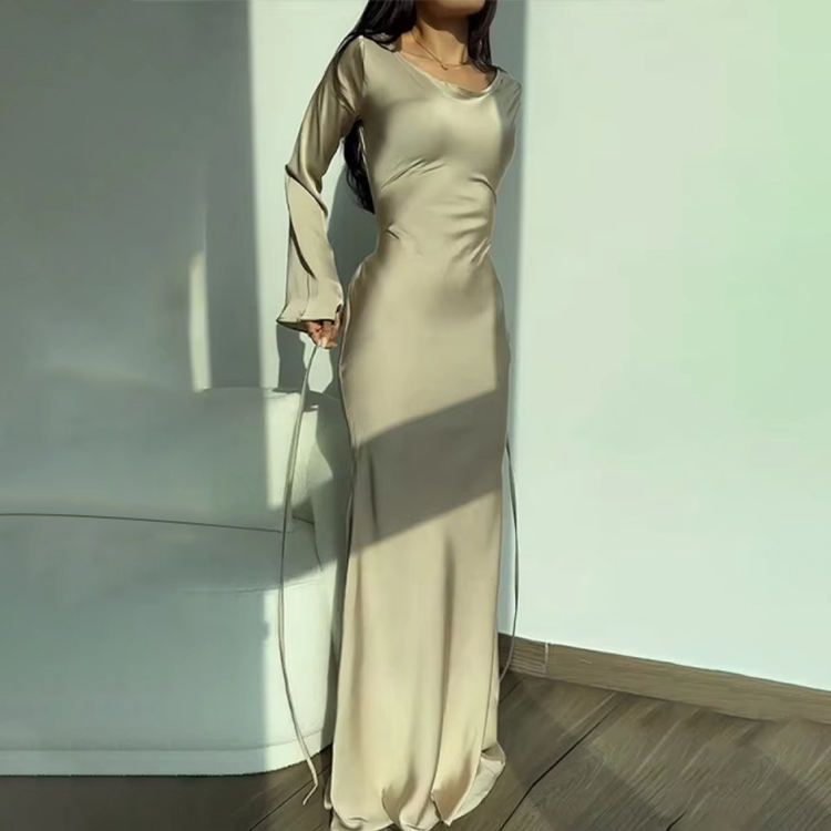 Abito Lungo Elegante Formale da Donna 2024, Vestito Aderente Personalizzato alla Moda, Abbigliamento Femminile con Maniche Lunghe e Balze, Abiti Casual in Lino