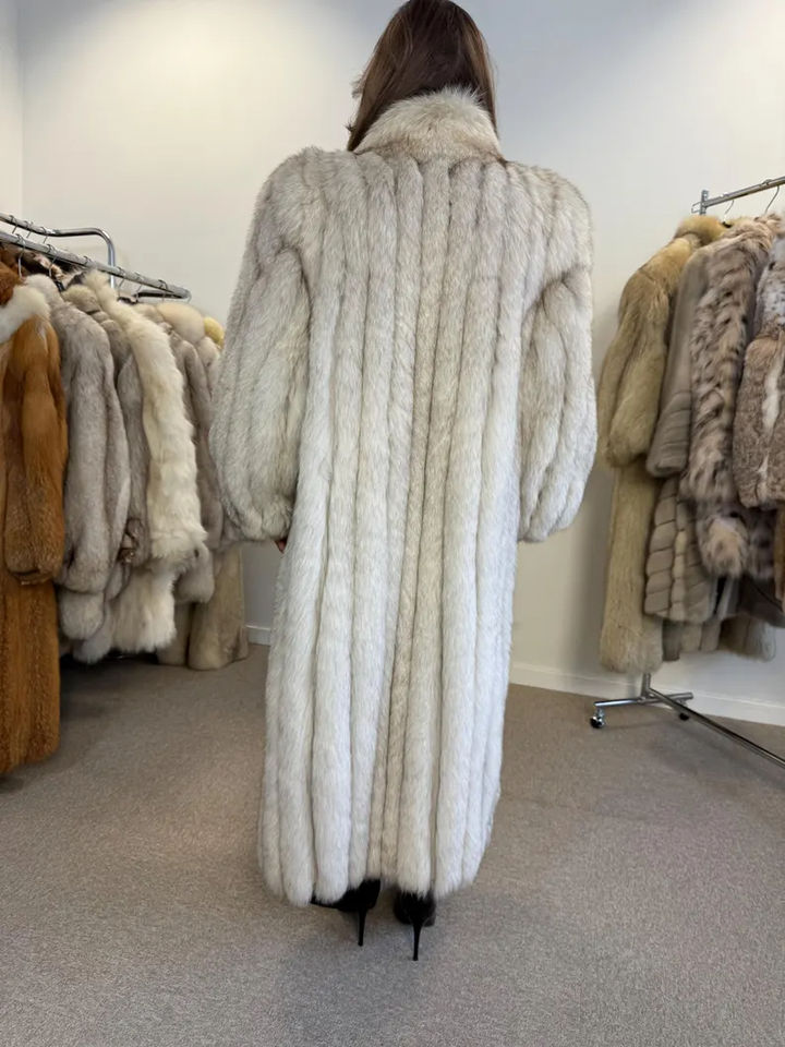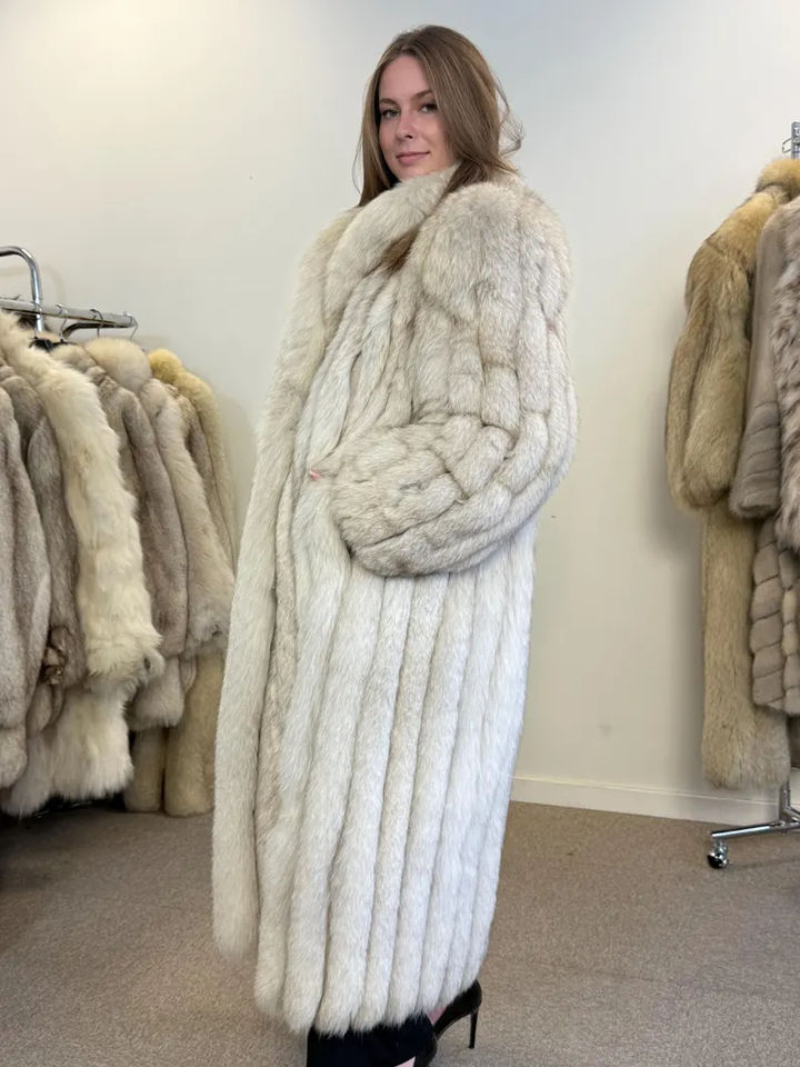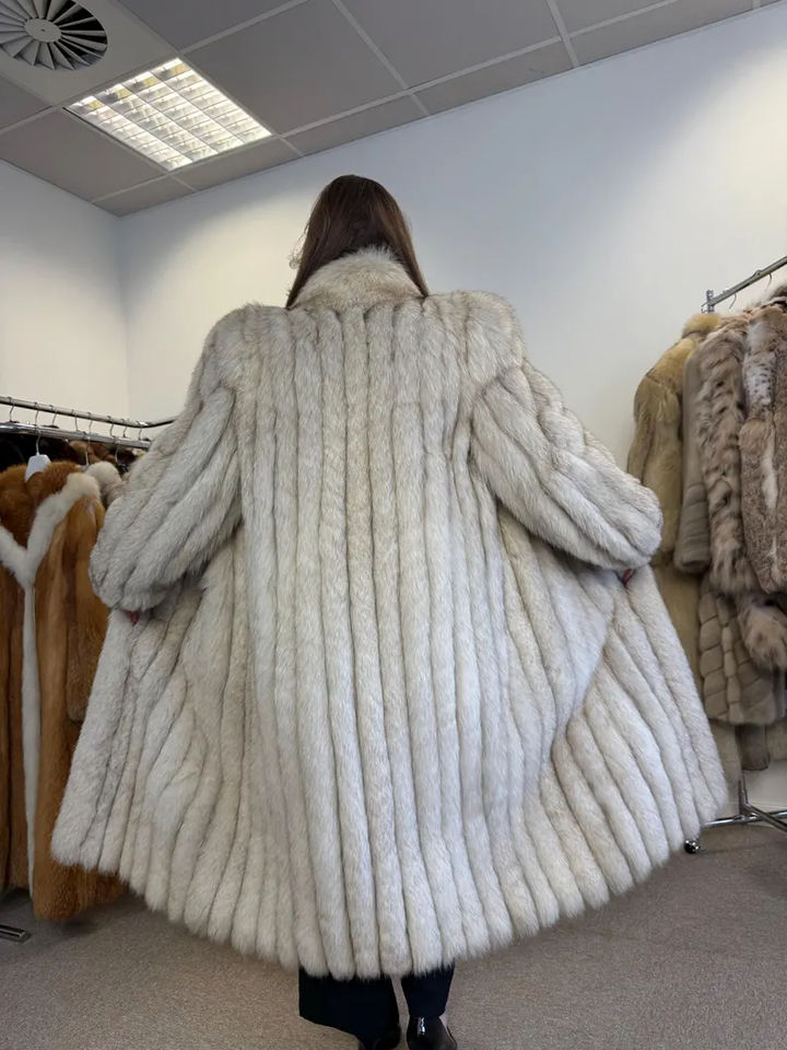 Cappotto Lungo di Pelliccia di Volpe Vera di Lusso Personalizzato da Donna, Trench Invernale Caldo in Colore Naturale