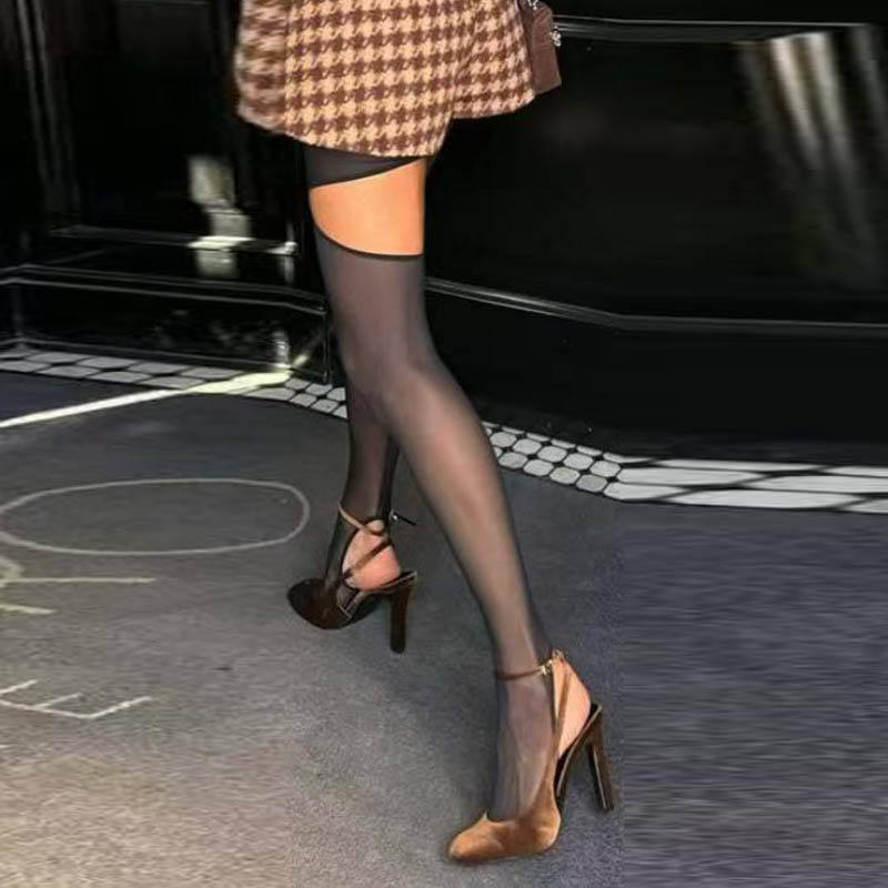 Collant Donna Trasparenti con Spacco sul Tallone, Nuovo Stile Trendy, Design Sexy, Alta Elasticità, Anti-Strappo, Effetto Snellente