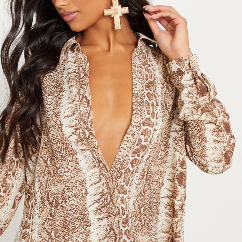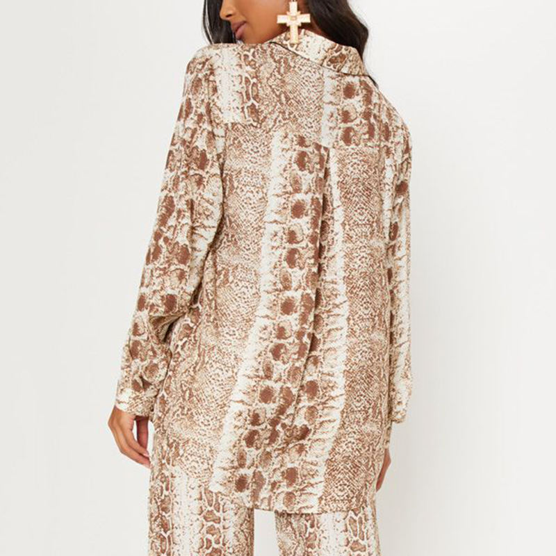 Nome del prodotto:Camicia oversize da donna con stampa serpente marrone alla moda personalizzata