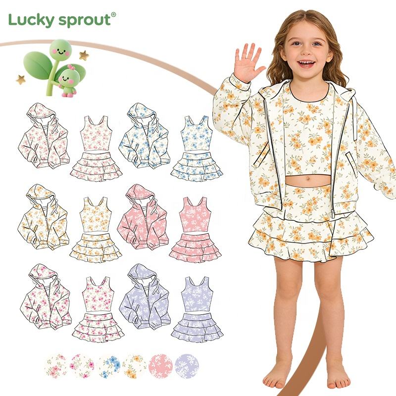 Set Yoga Personalizzato alla Moda per Ragazze: Giacca con Cappuccio, Top Senza Maniche, Maglia a Maniche Lunghe e Gonna, Abbigliamento Sportivo UPF 50+