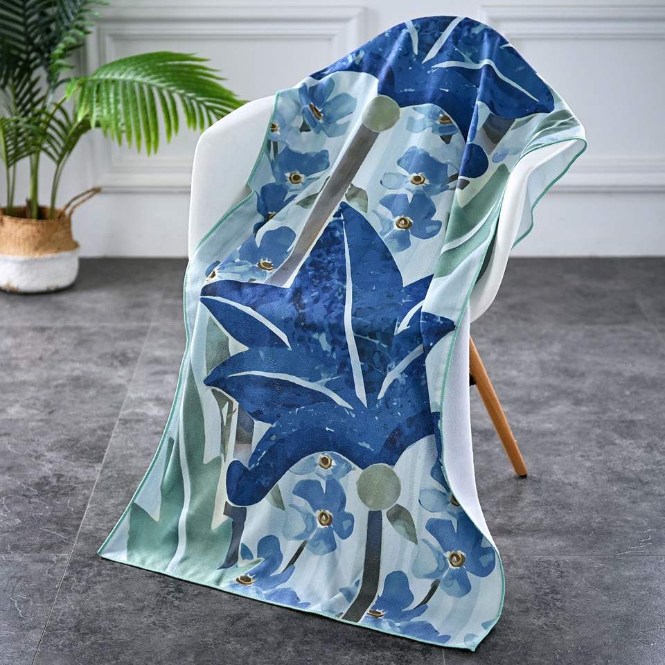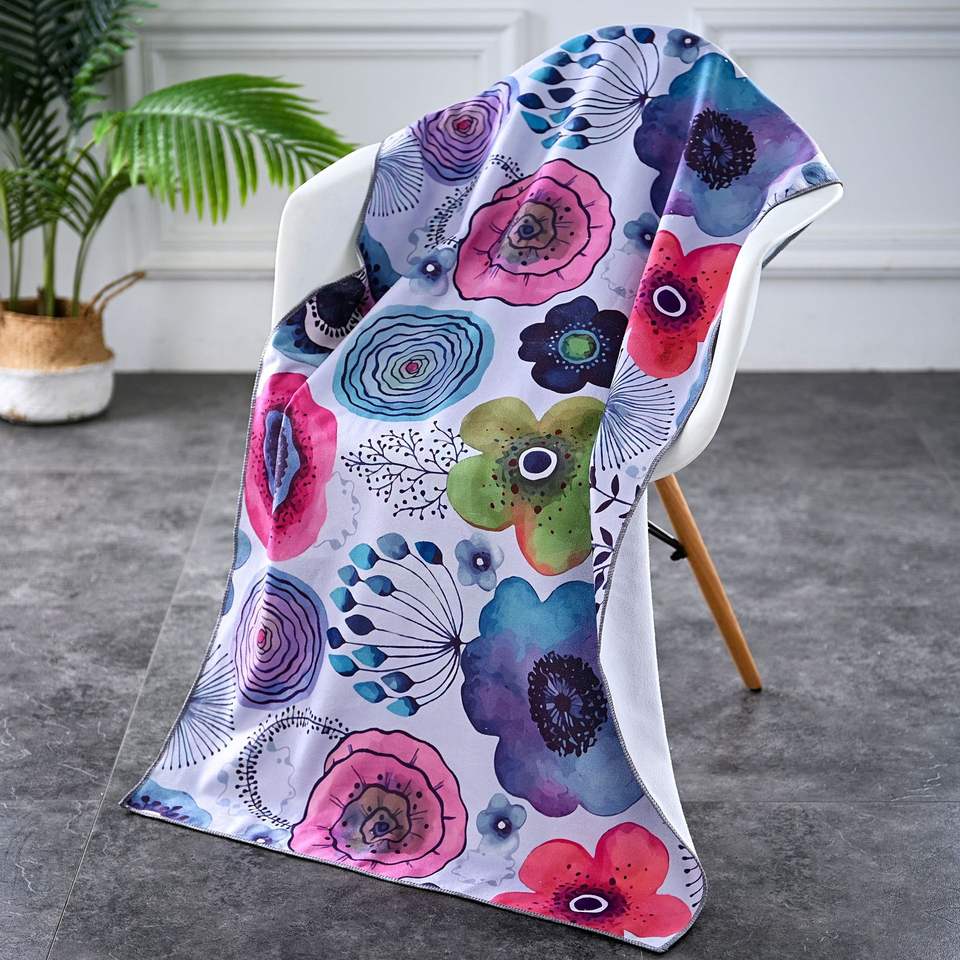 Logo personalizzato con stampa floreale in microfibra, telo da spiaggia a sublimazione in microfibra con Design personalizzato