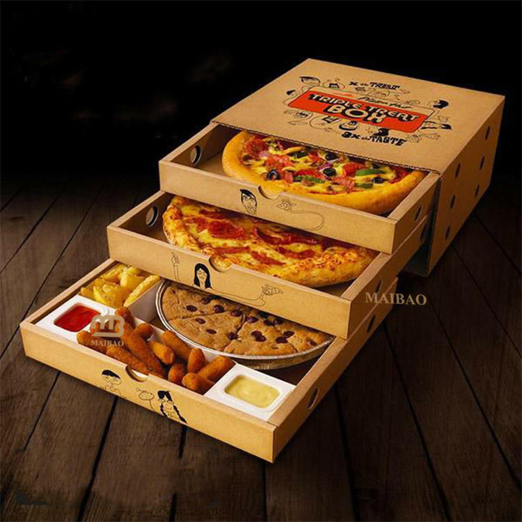 Contenitori in Carta Personalizzati per Alimenti, Scatole per Pizza a Tre Strati 30cm 32cm, Scatole da Asporto per Hamburger, Patatine Fritte, Pollo Fritto, Pizza