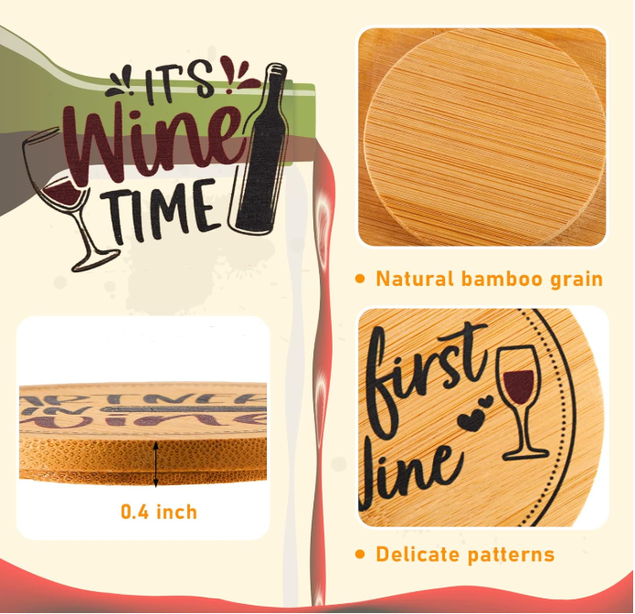 Custom Funny Bamboo Wine Glass Covers Wooden Water Glass Toppers to Keep Bugs Out for Party