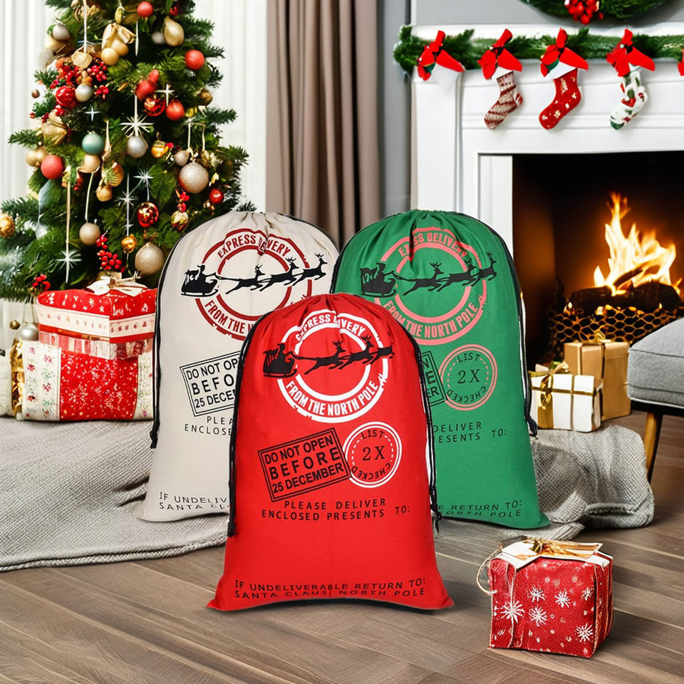 Sacchi regalo all'ingrosso personalizzati in tela di Natale gigante per decorazioni natalizie