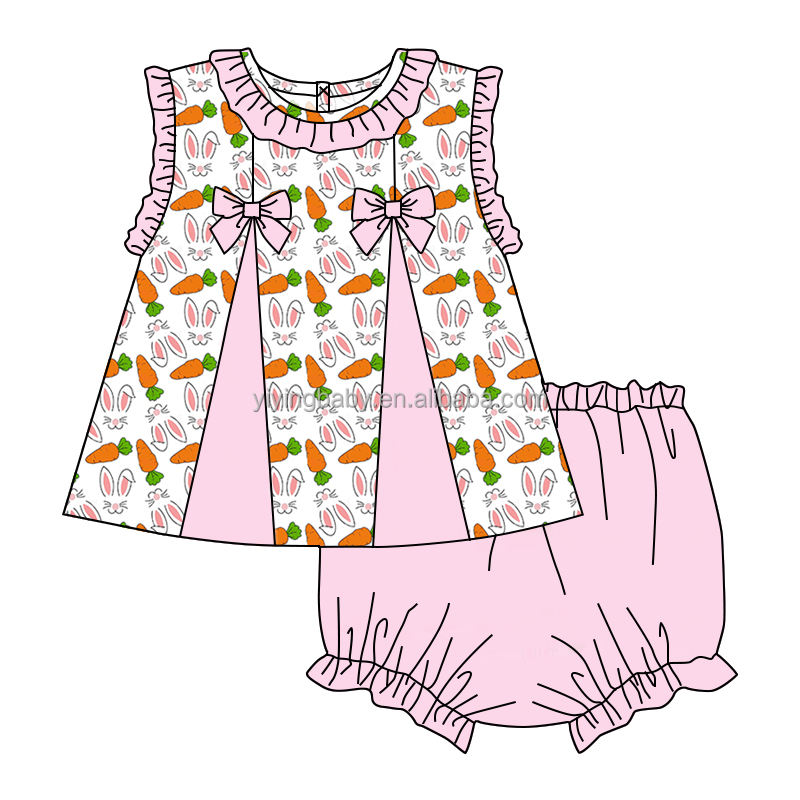 Set di abbigliamento personalizzato per ragazze stile dolce senza maniche Top Design a fiocco 2 pezzi abiti corti comodi in tessuto abbigliamento per ragazza