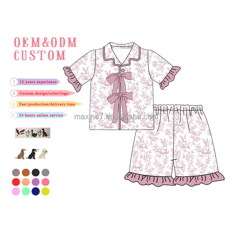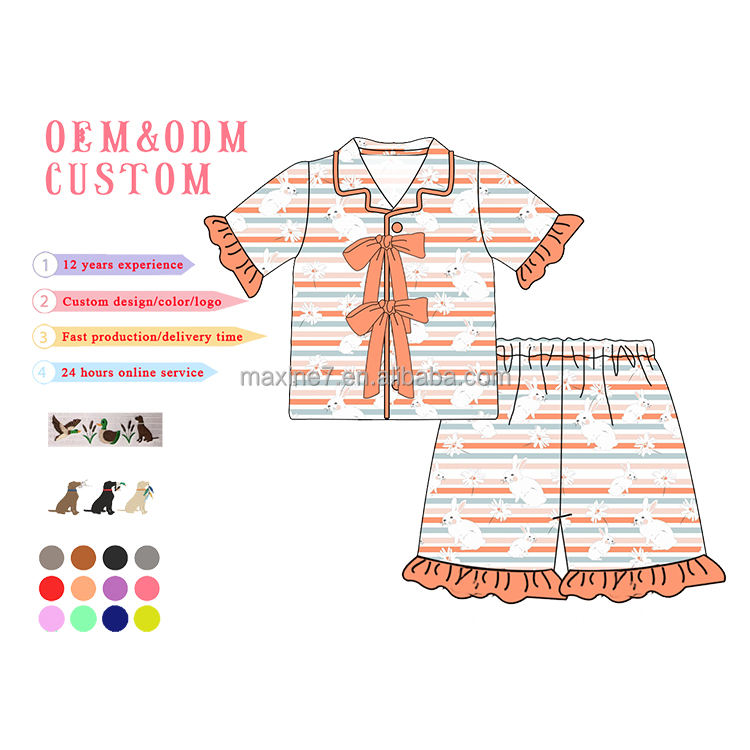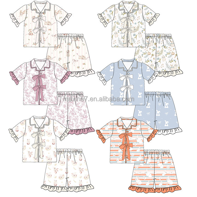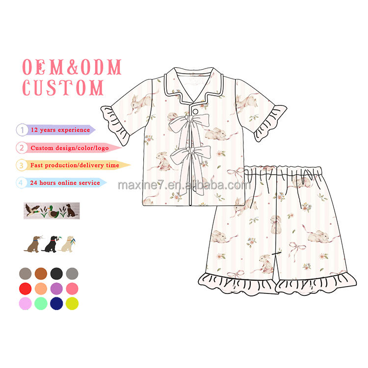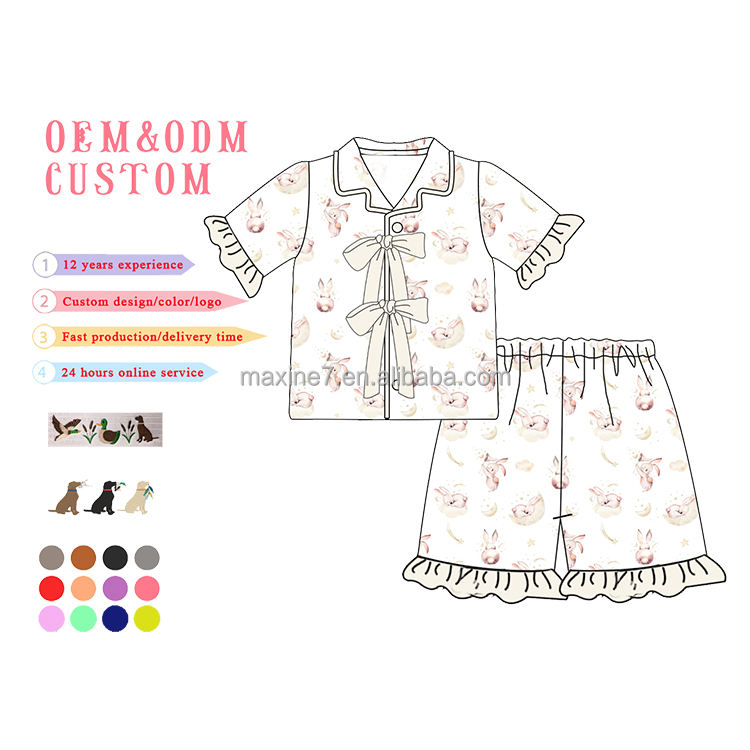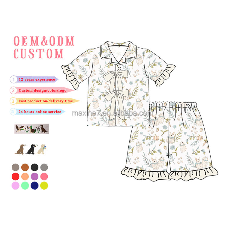 Set pigiama pasquale per famiglia con stampa di coniglio personalizzato con Logo e ricamo con nome