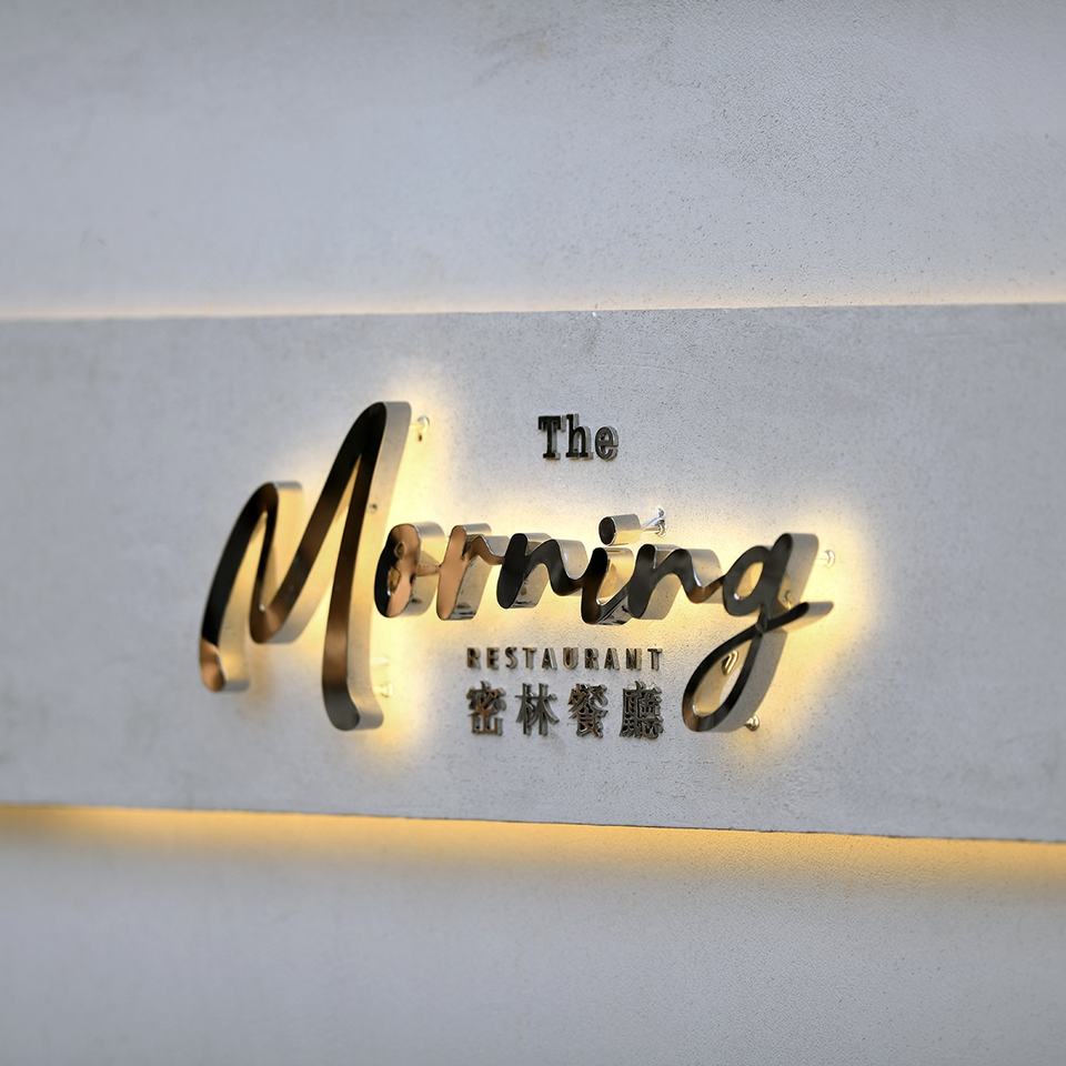 Lettere in Metallo Personalizzate in Acciaio Inox Spazzolato Effetto Specchio Dorato per Aziende di Panificazione con Strisce LED