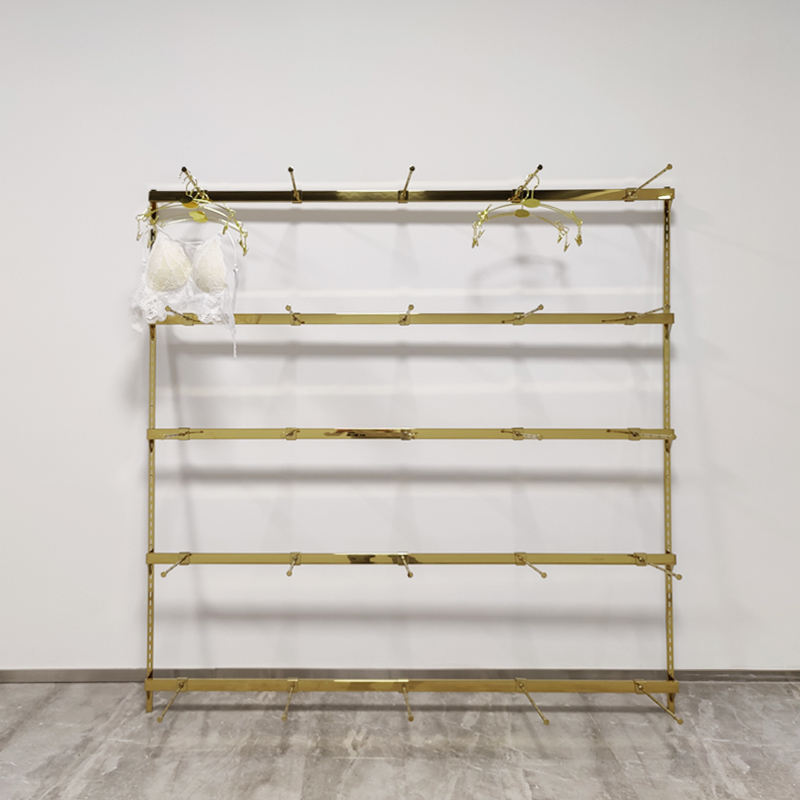 Espositore da Parete Personalizzato in Oro per Lingerie, Supporto per Reggiseni in Acciaio Inox, Scaffale per Biancheria Intima, Decorazione Negozio, Design per Punto Vendita