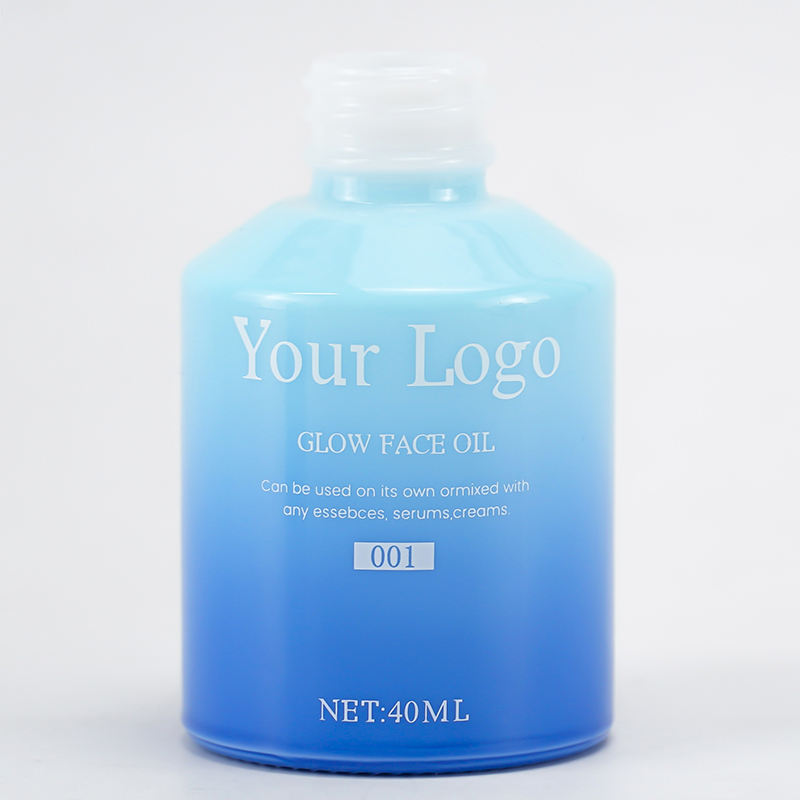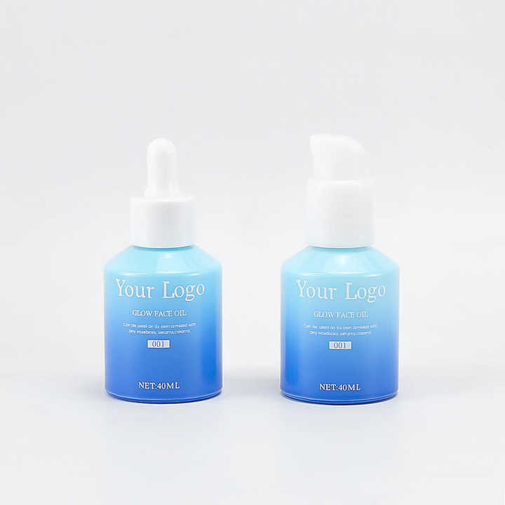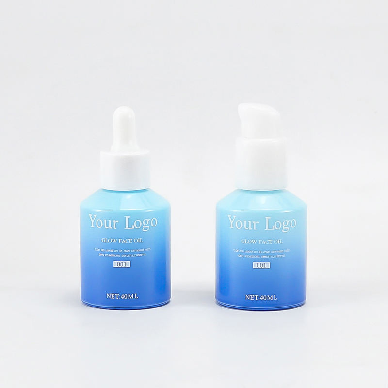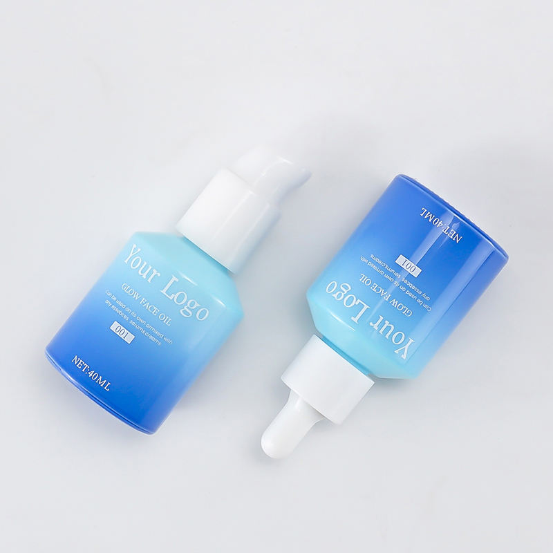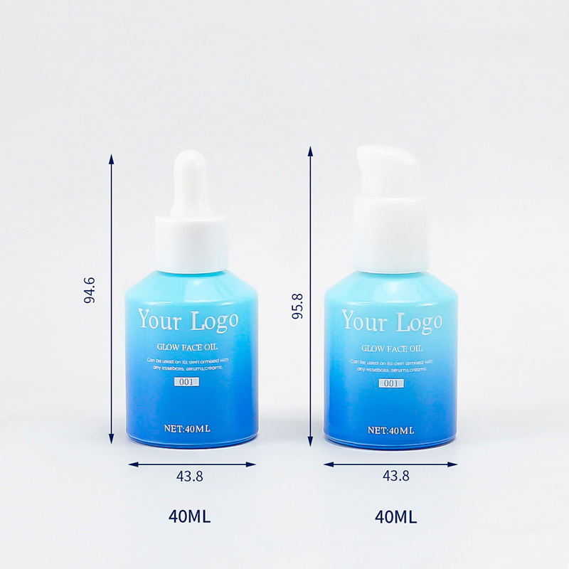 Bottiglie in Vetro Personalizzate con Gradiente Blu da 40ml, con Tappo Contagocce e Pompa per Packaging Cosmetico