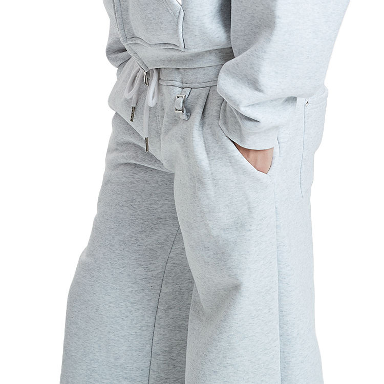 Custom Gray 100 Cotton 385 Gsm Oversized Wide-Leg Cropped Baggy Hip Hop Bell Bottom Sweatpants Men