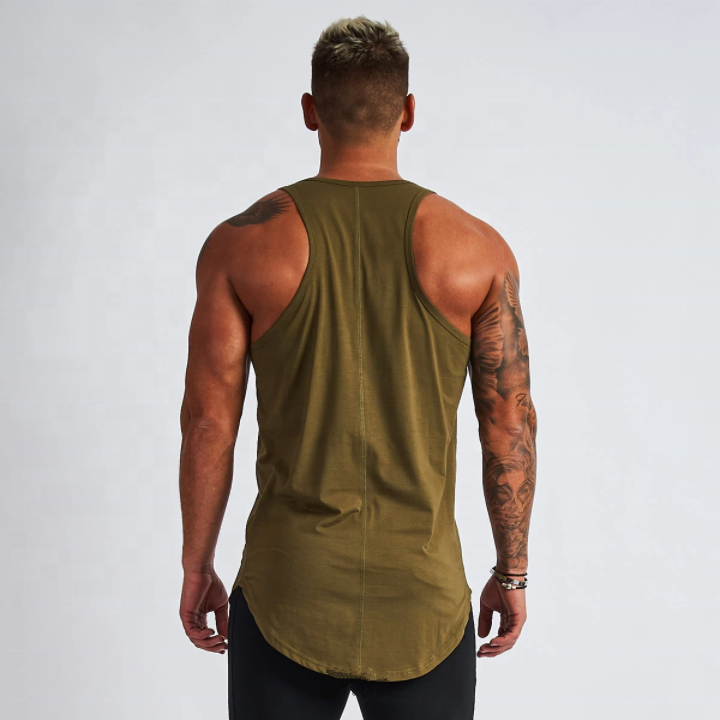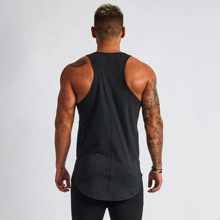 Uomo canotta orlo curvo fitness muscolare con palangari tank top uomini