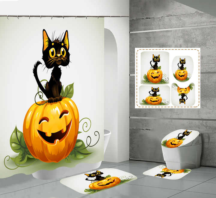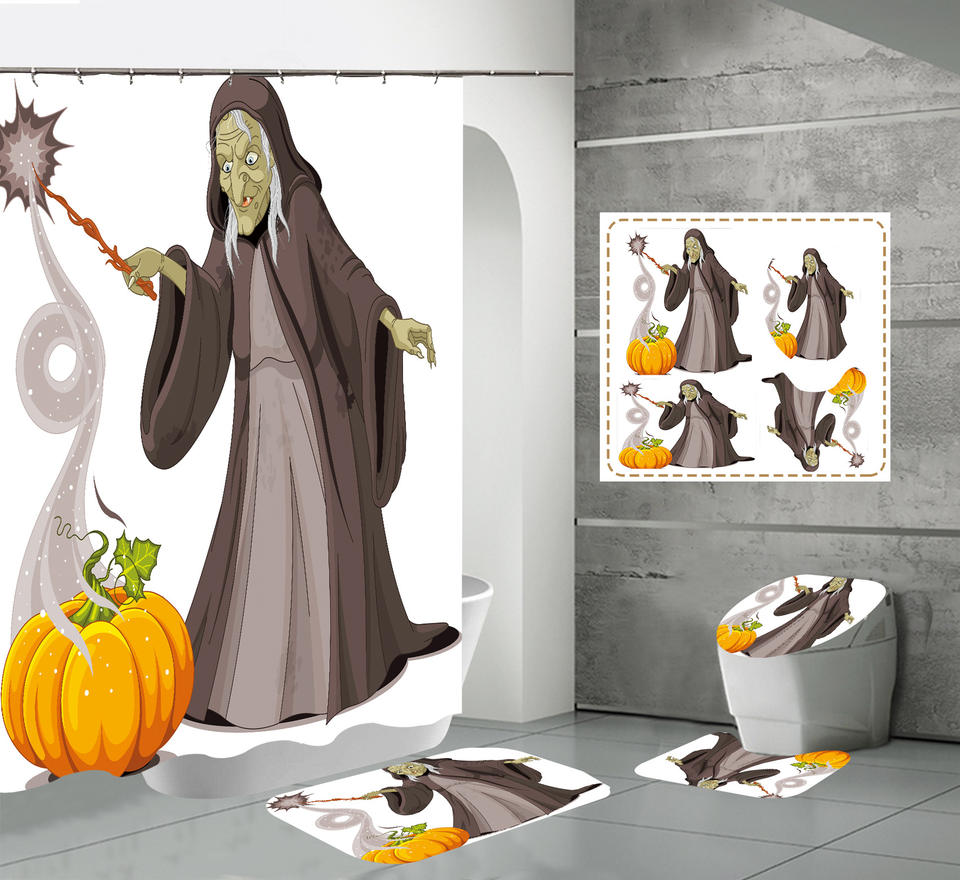 Set di tende da doccia in poliestere di Halloween personalizzato con cabina Horror zucca fantasma notte foresta bagno decorazione antiscivolo tappeto bagno