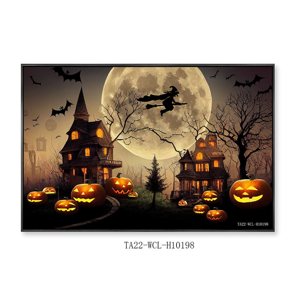Su misura di Halloween acquerello su tela stampa LED da parete arte decorazione per la casa con zucca strega per castello e pipistrello scenario soggetto