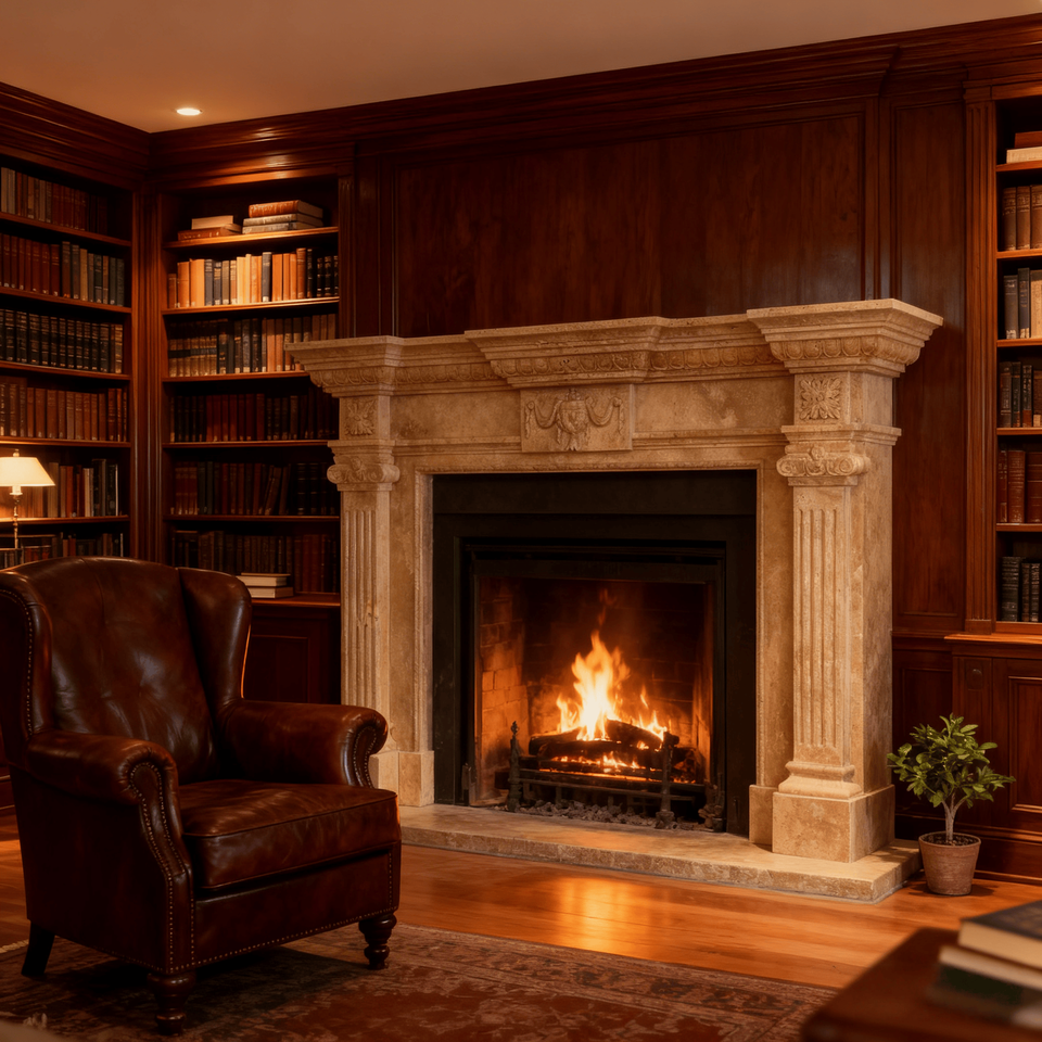 Cornice per Caminetto in Marmo Naturale Intagliata a Mano, Stile Europeo, Decorazione Interna in Pietra per Villa