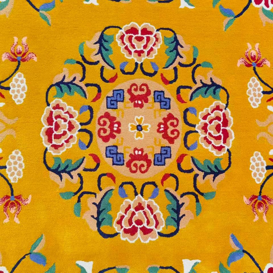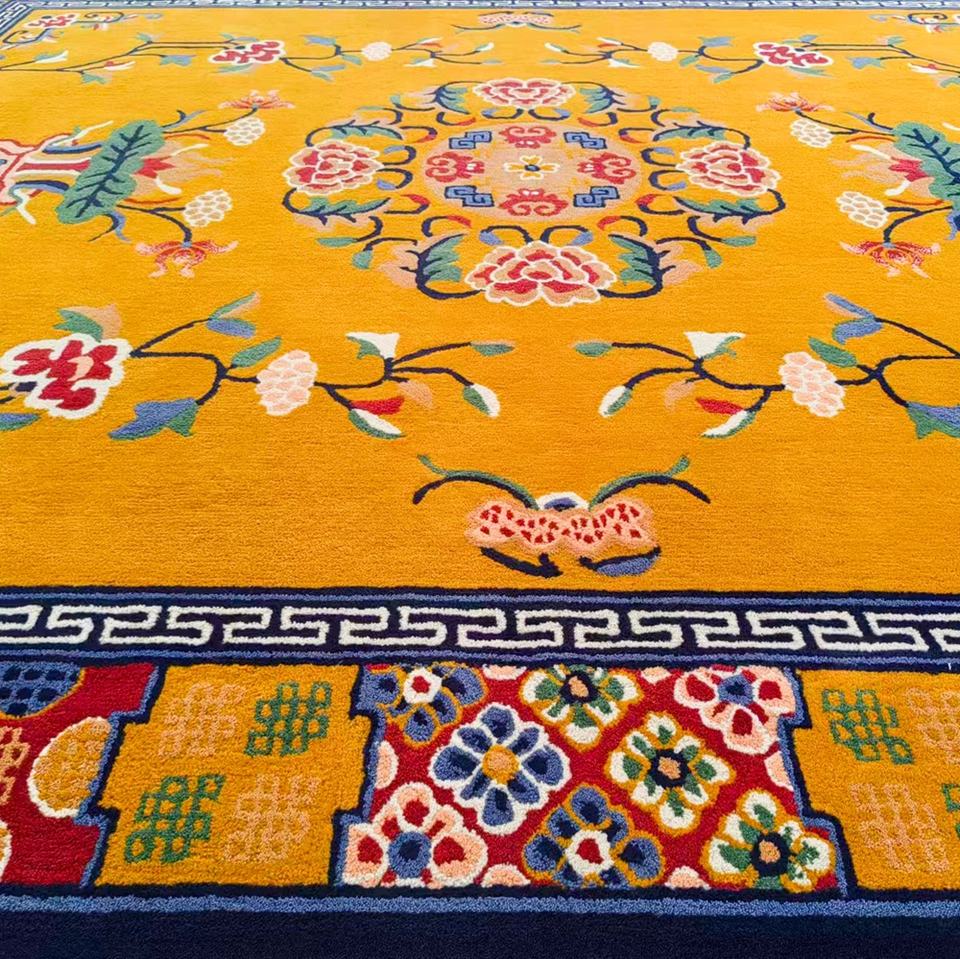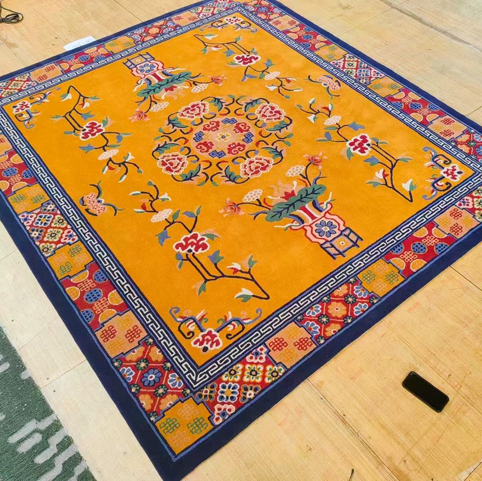 Tappeti Artigianali Personalizzati in Seta e Lana, Stile Tibetano Vintage di Lusso, Tappeto Dorato Tufted per Soggiorno, Camera da Letto, Ville Premium