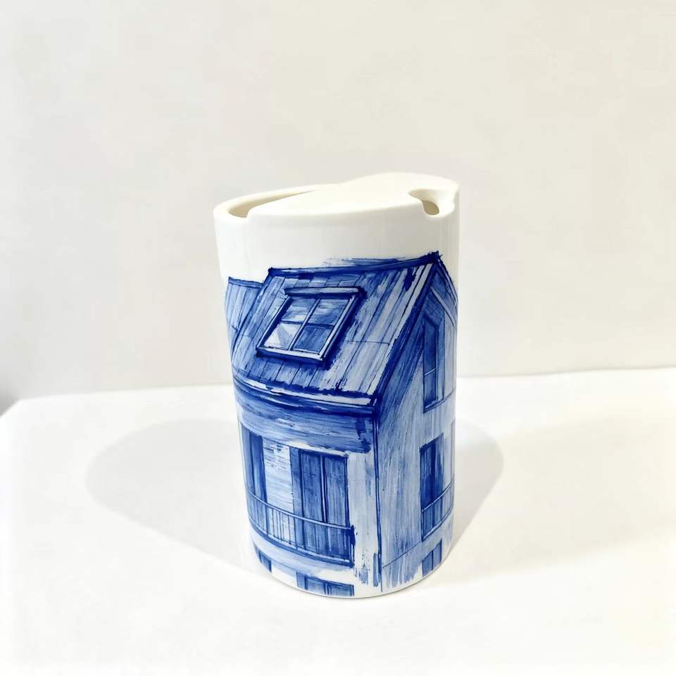 Tazza da caffè in ceramica dipinta a mano personalizzata con lucernario domestico foto-regalo perfetto per le feste